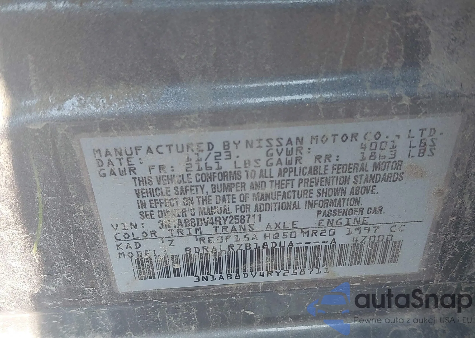 • VIN 3N1AB8DV4RY258711