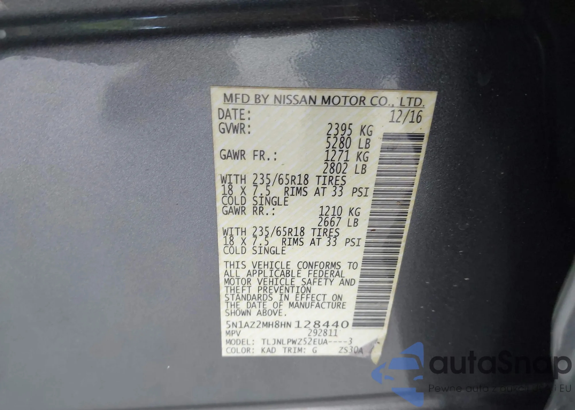 • VIN 5N1AZ2MH8HN128440