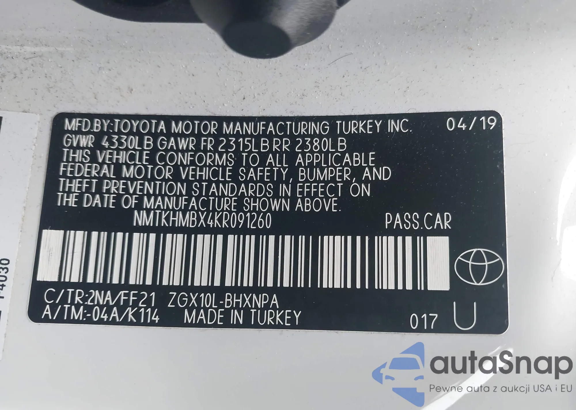 • VIN YV4A22PK5J1381080