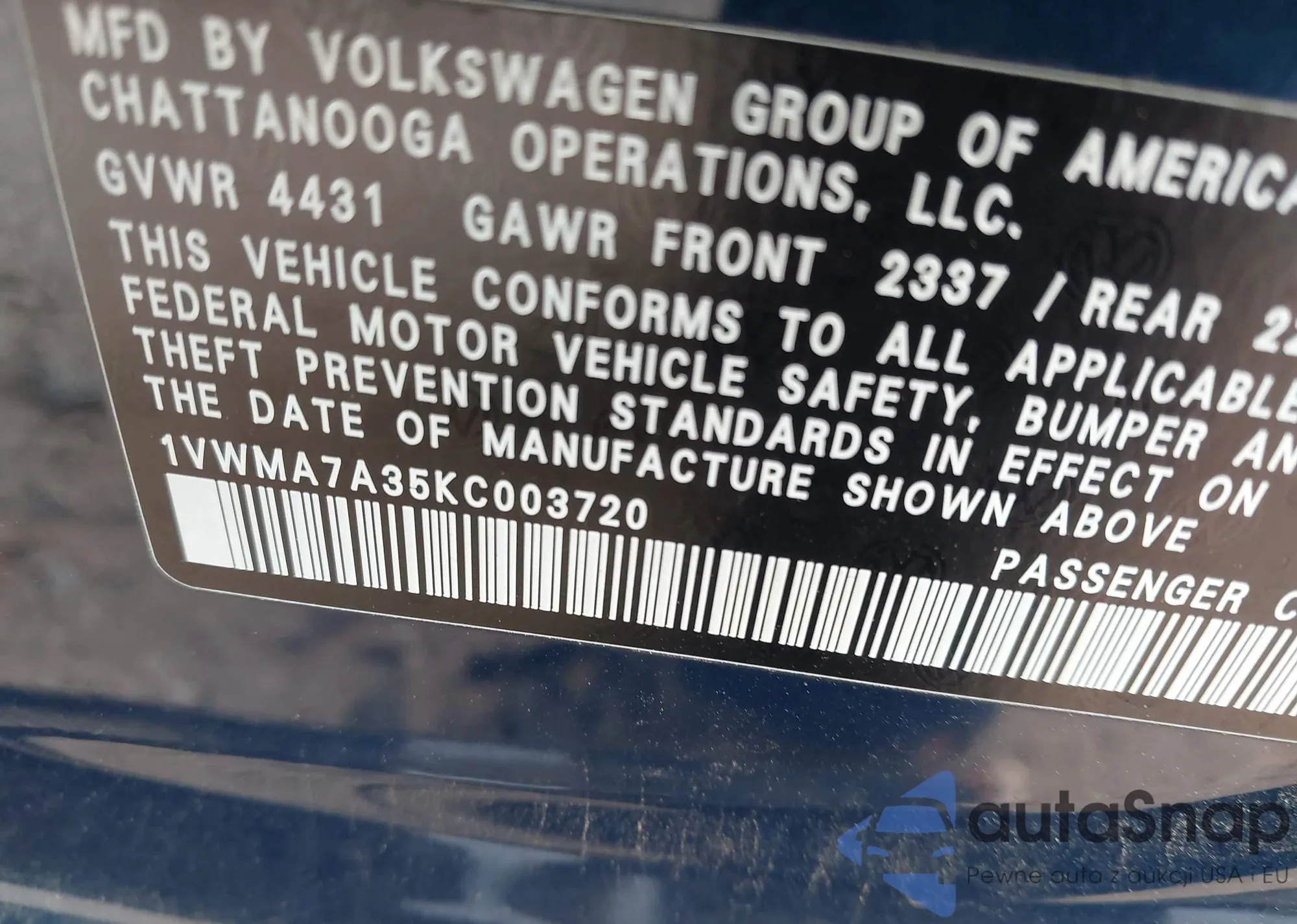 • VIN 3VW217AU8FM012478