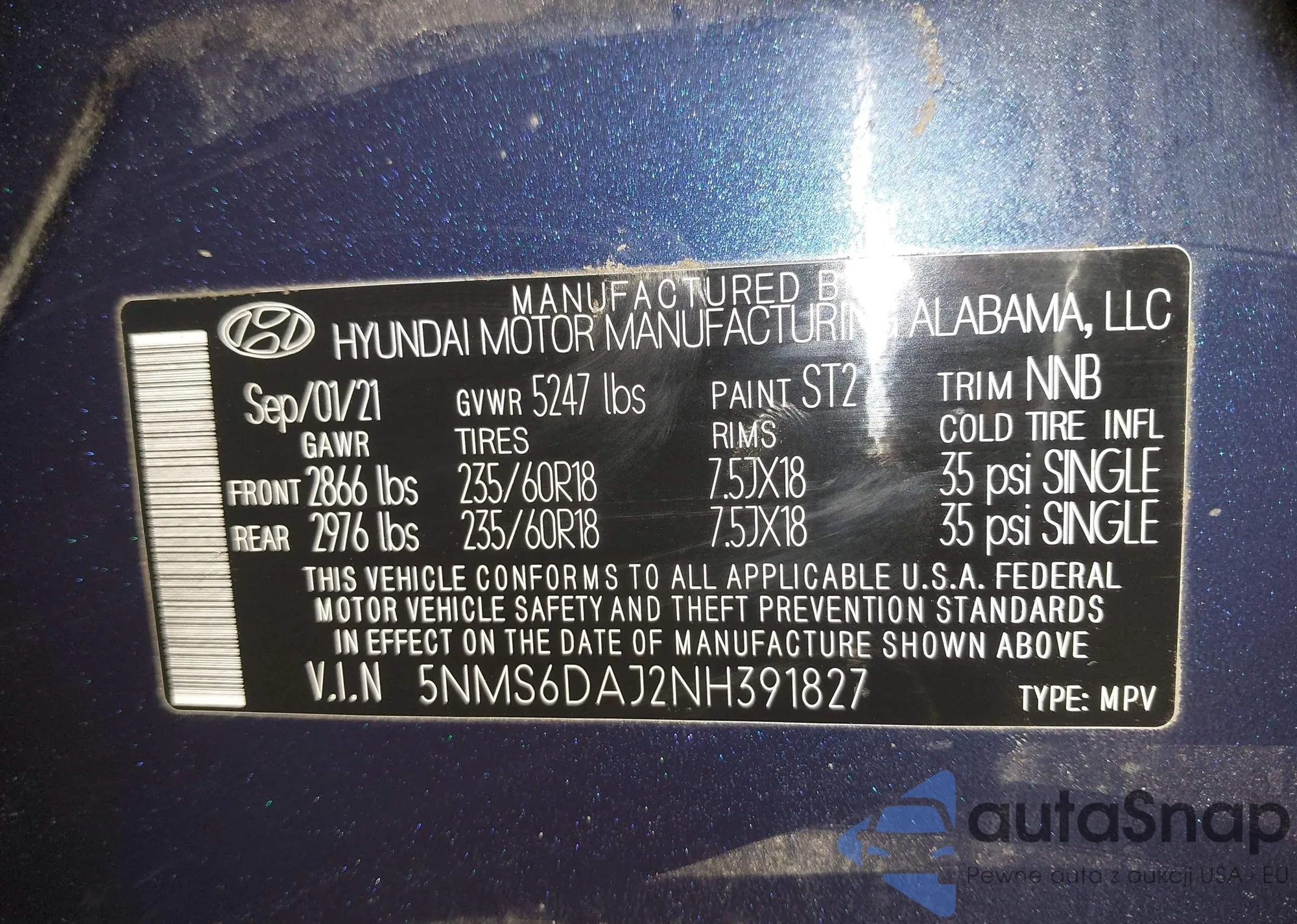 • VIN 5NMS6DAJ2NH391827