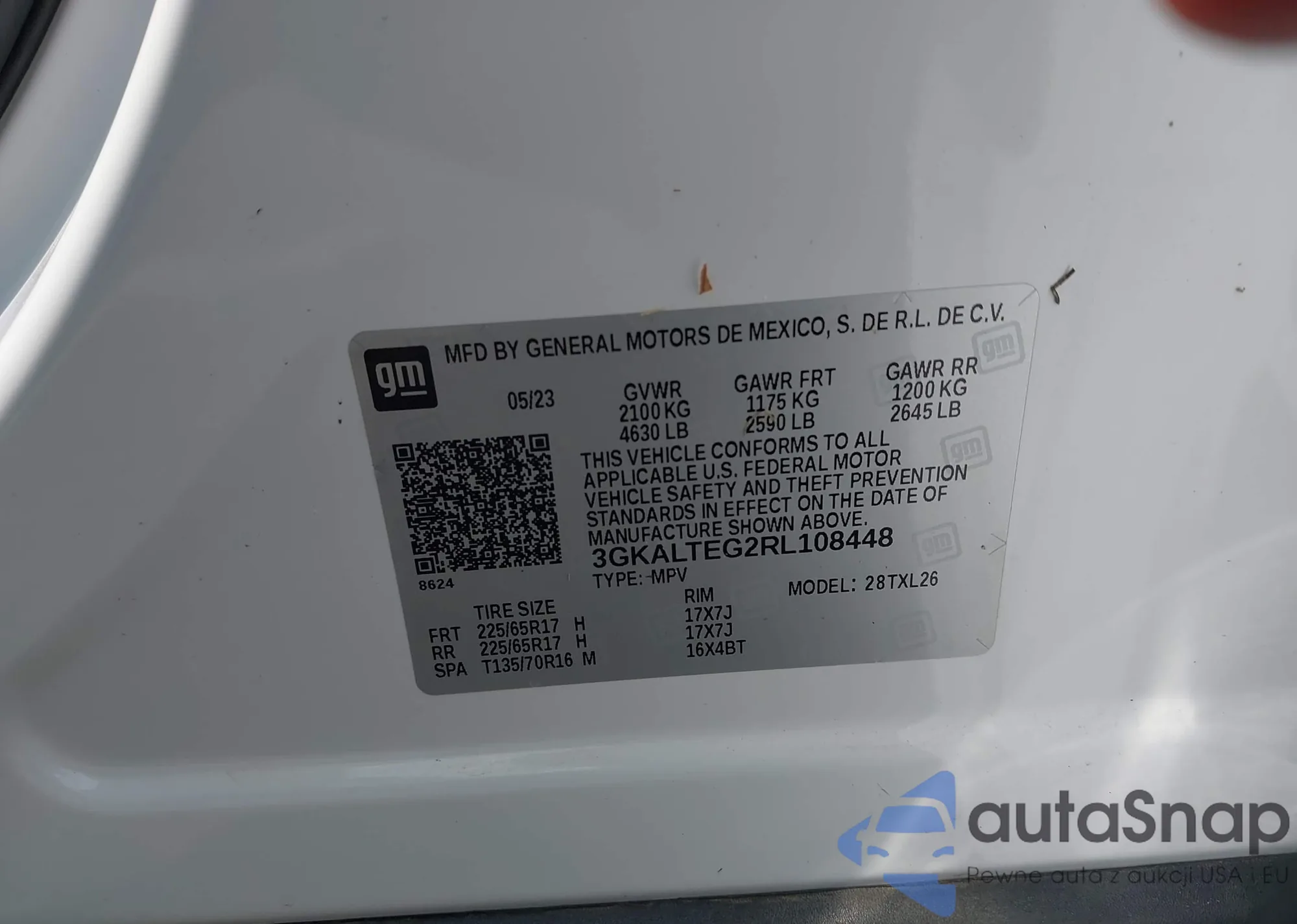 LOT: 42869139 VIN: 3GKALTEG2RL108448