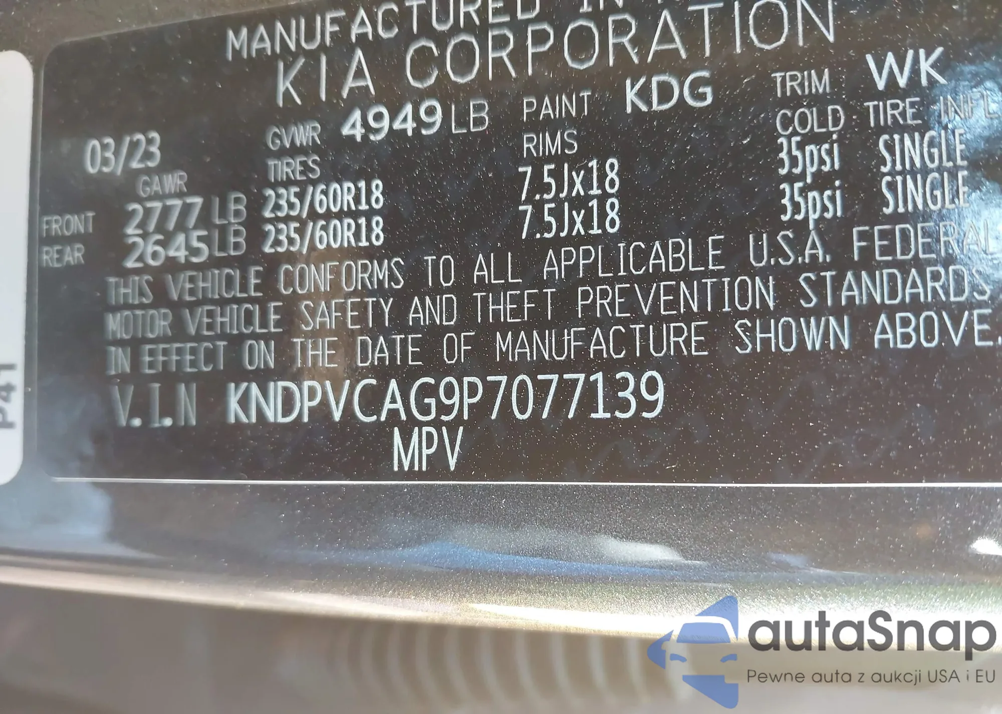 LOT: 43133239 VIN: KNDPVCAG9P7077139