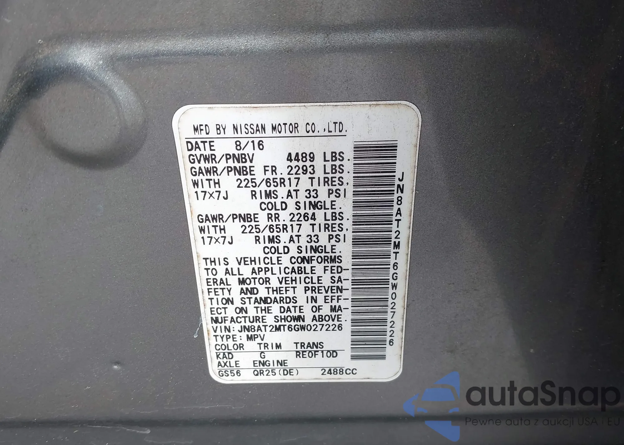 LOT: 43119667 VIN: JF1SG67636H702640
