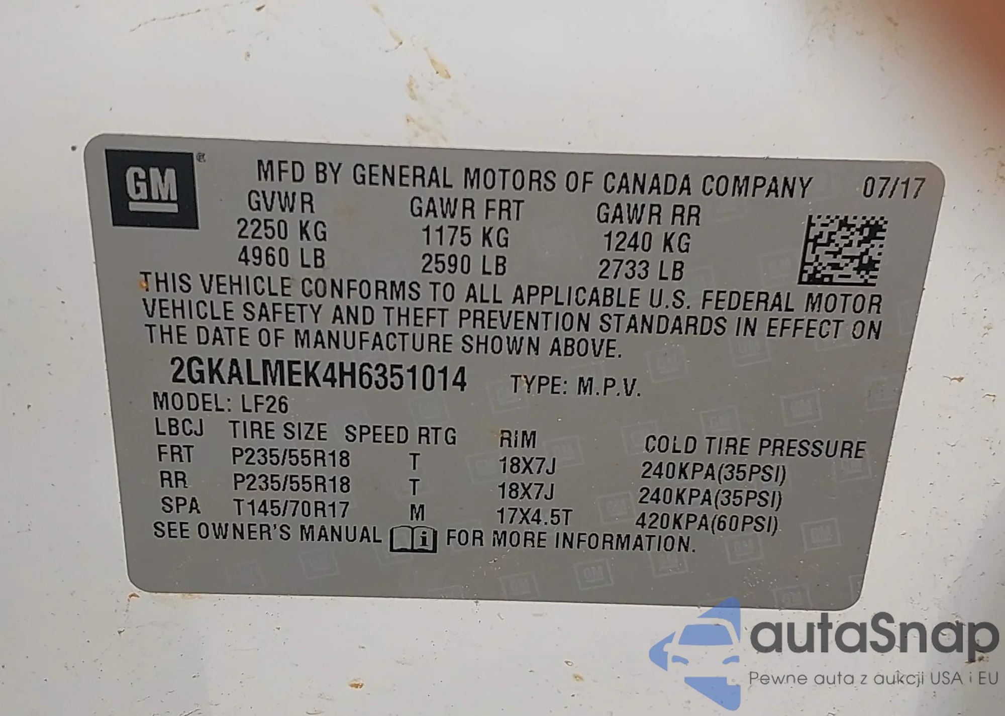 • VIN 2GKALMEK4H6351014