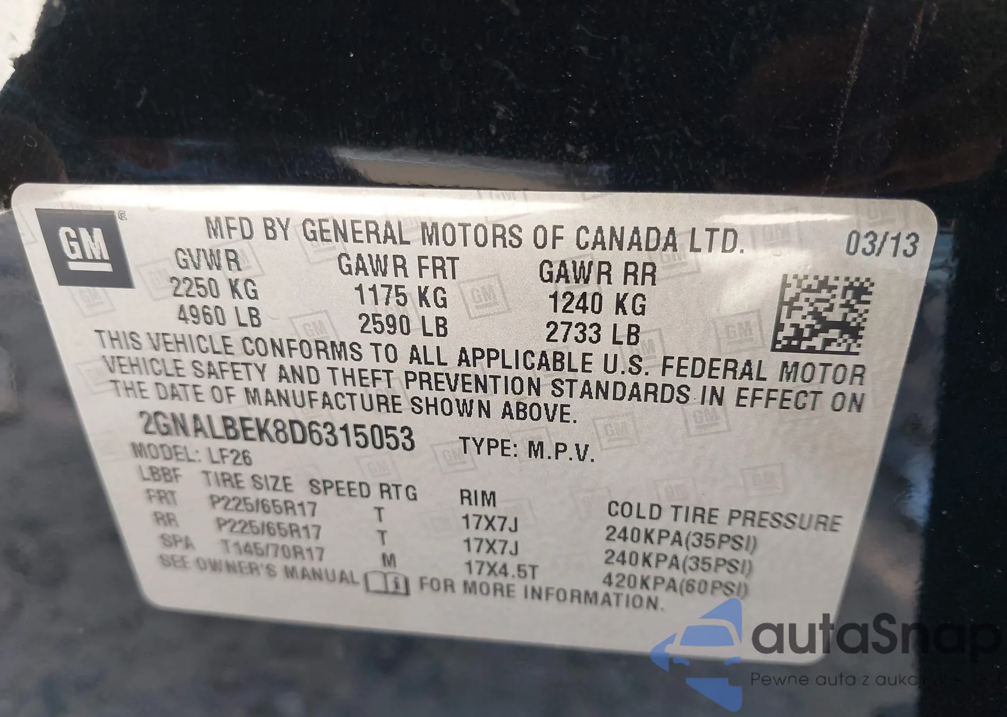 • VIN 2GNALBEK8D6315053