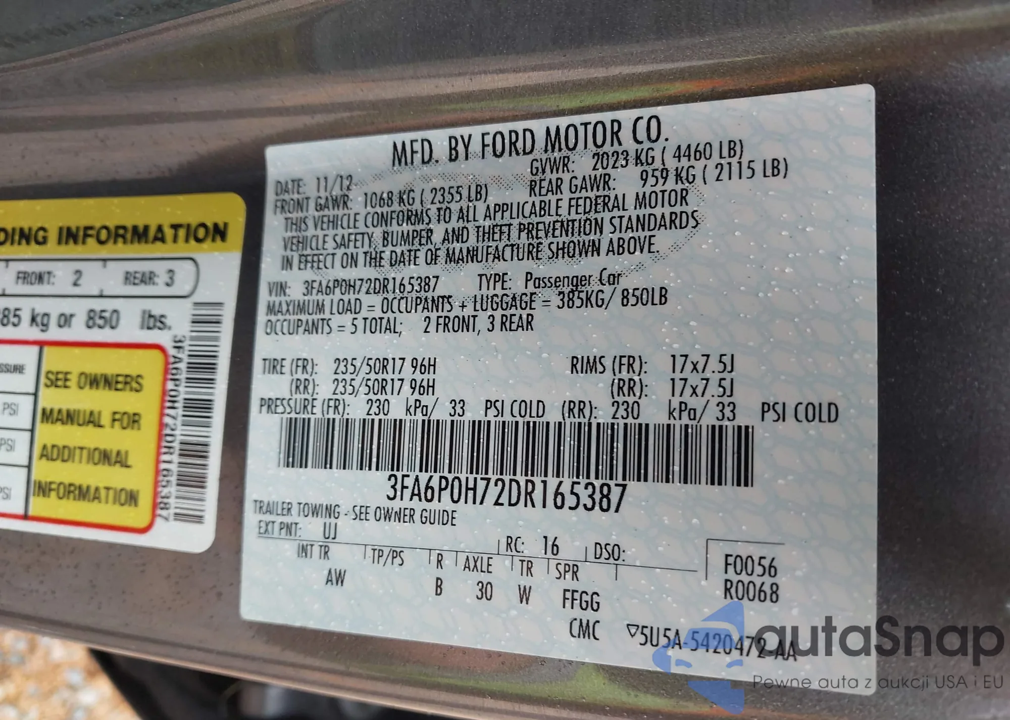• VIN 3FA6P0H72DR165387