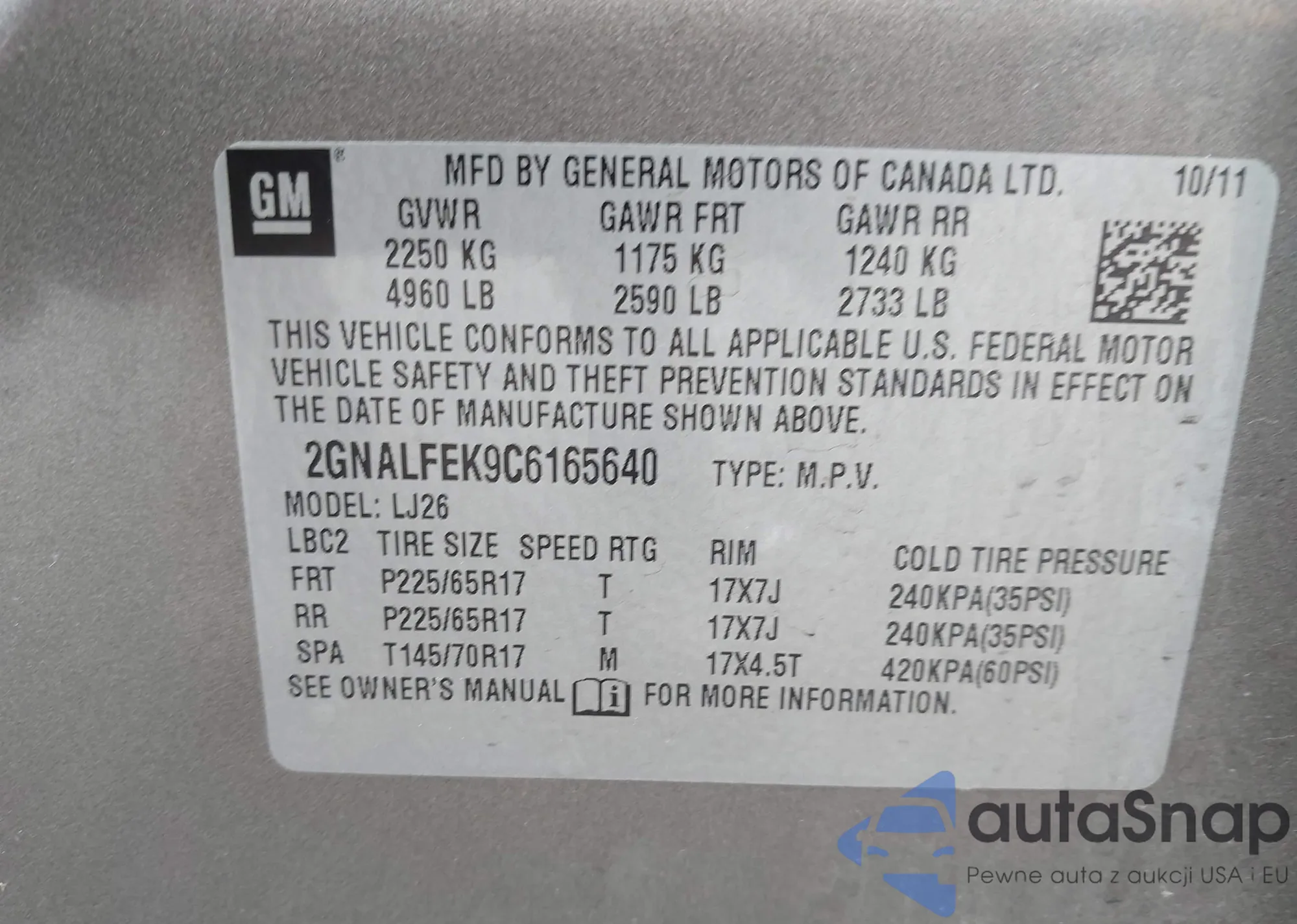 • VIN 2GNALFEK9C6165640