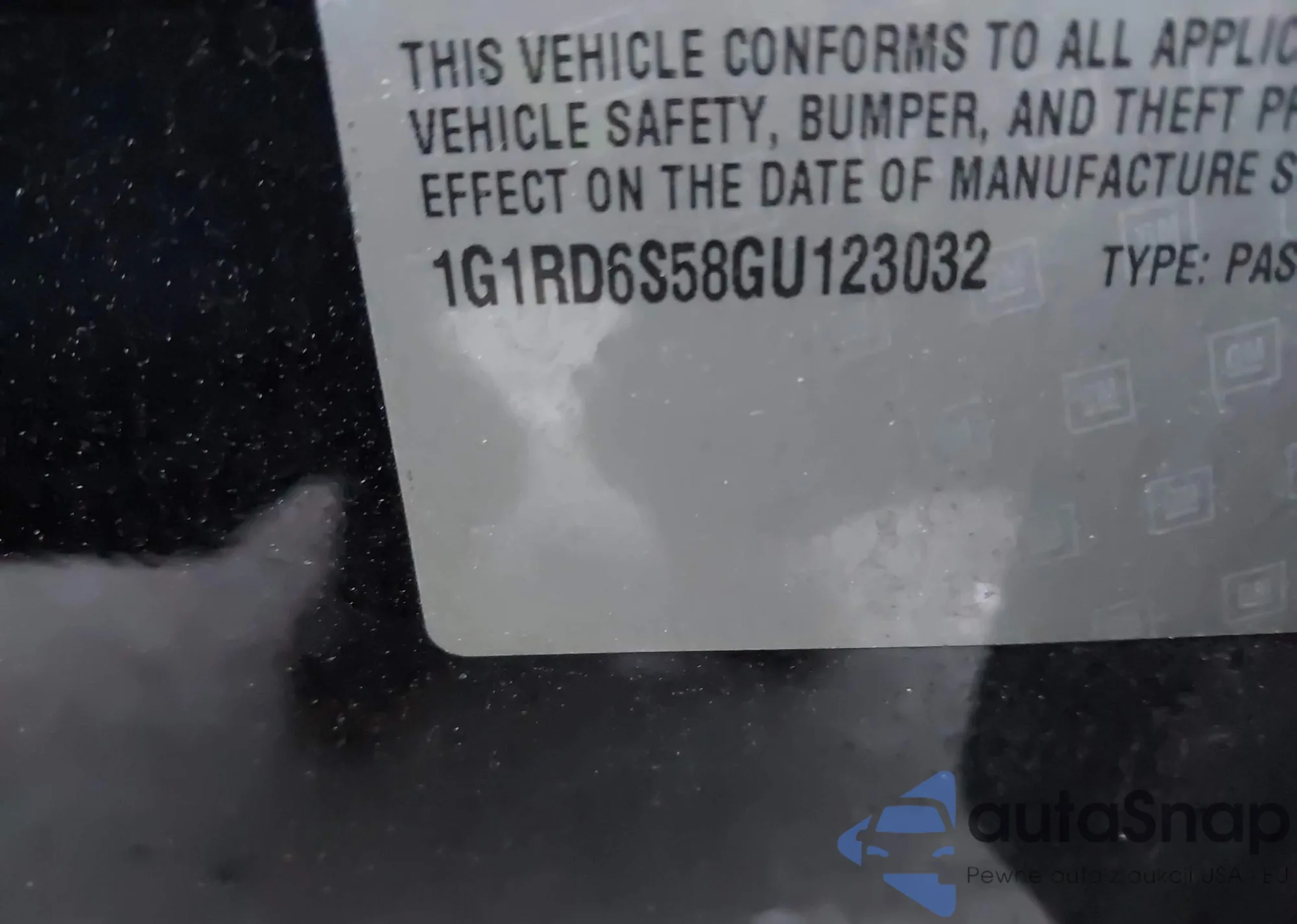 LOT: 43345590 VIN: 1G1RD6S58GU123032