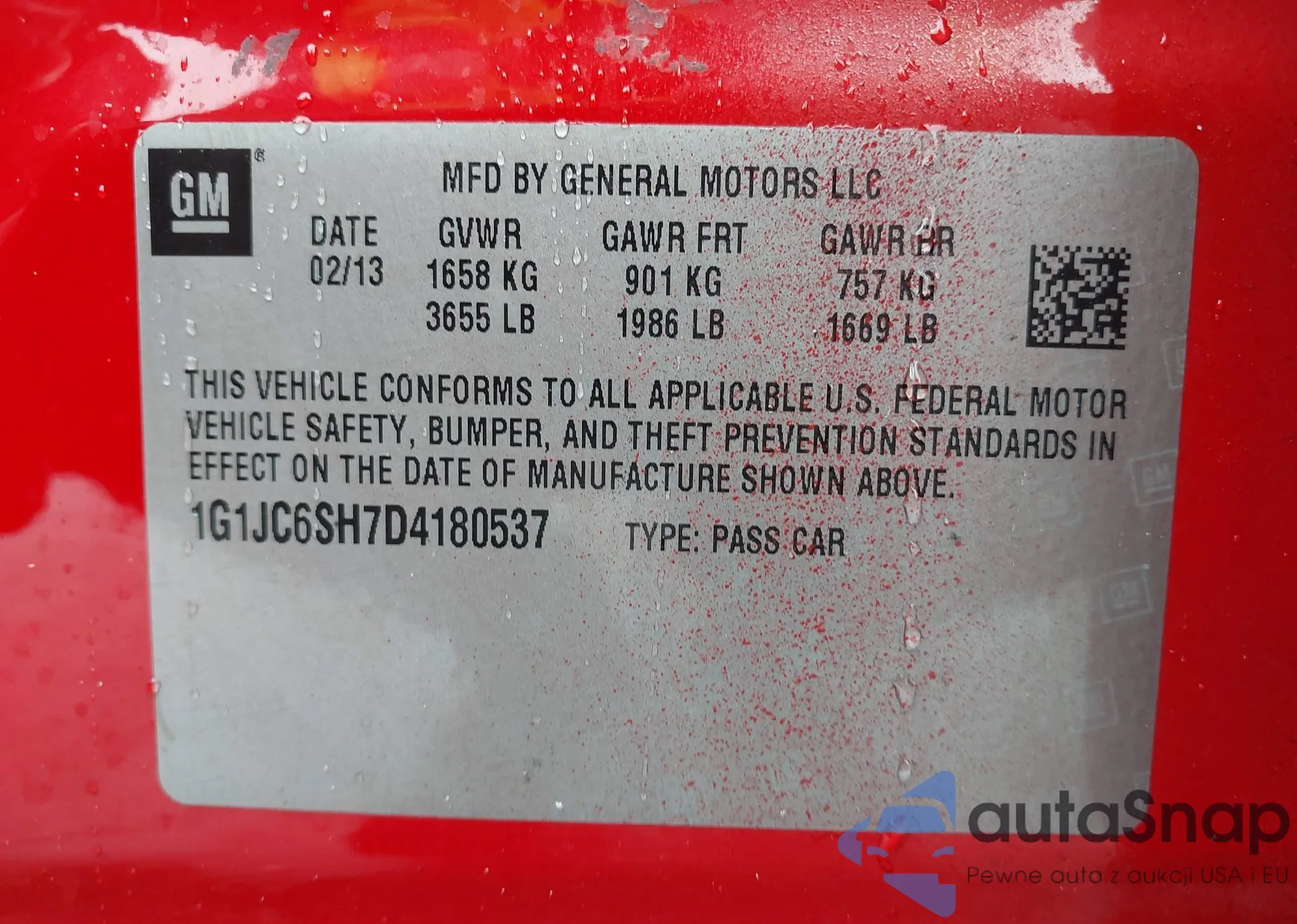 LOT: 43330470 VIN: 1G1JC6SH7D4180537