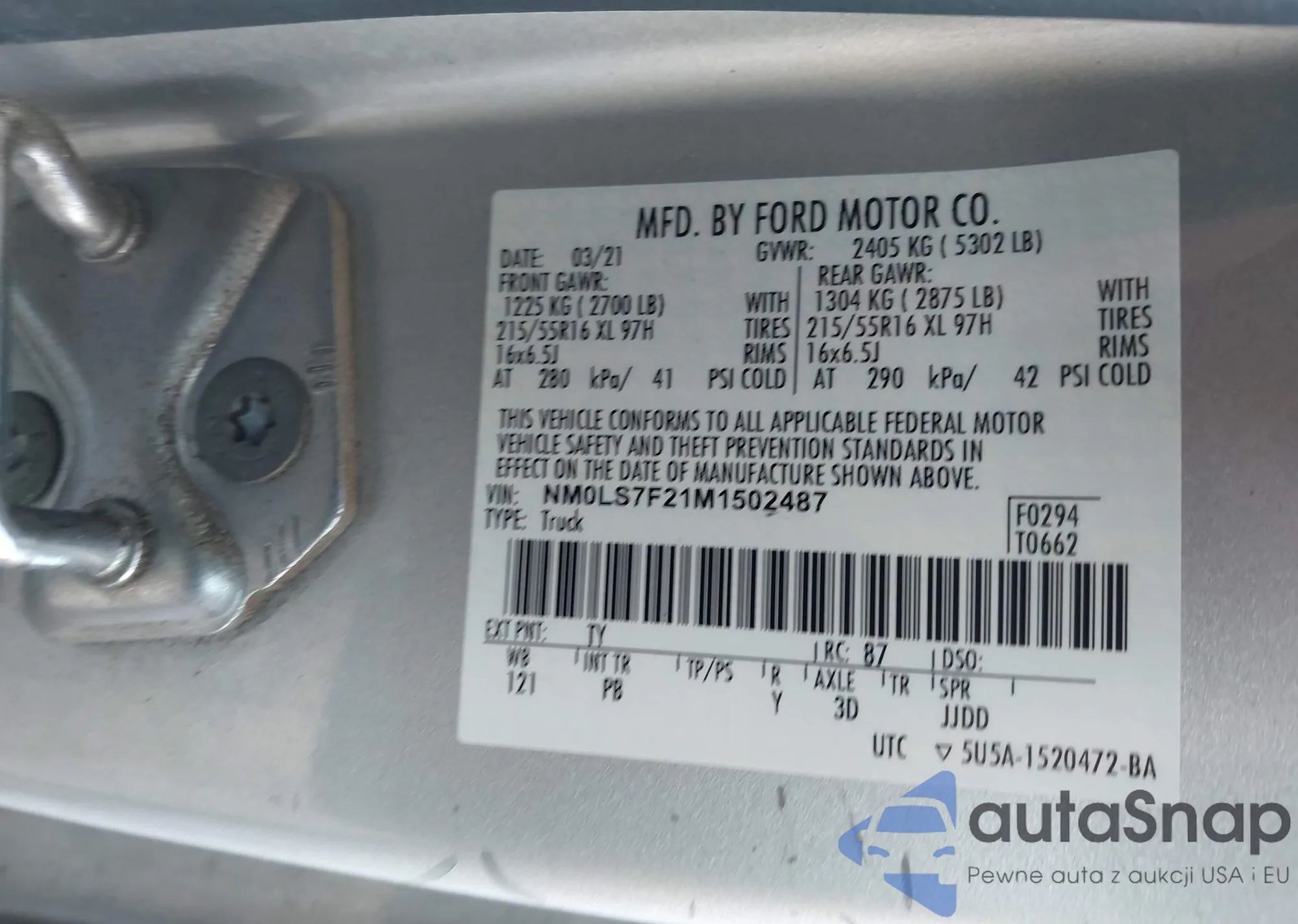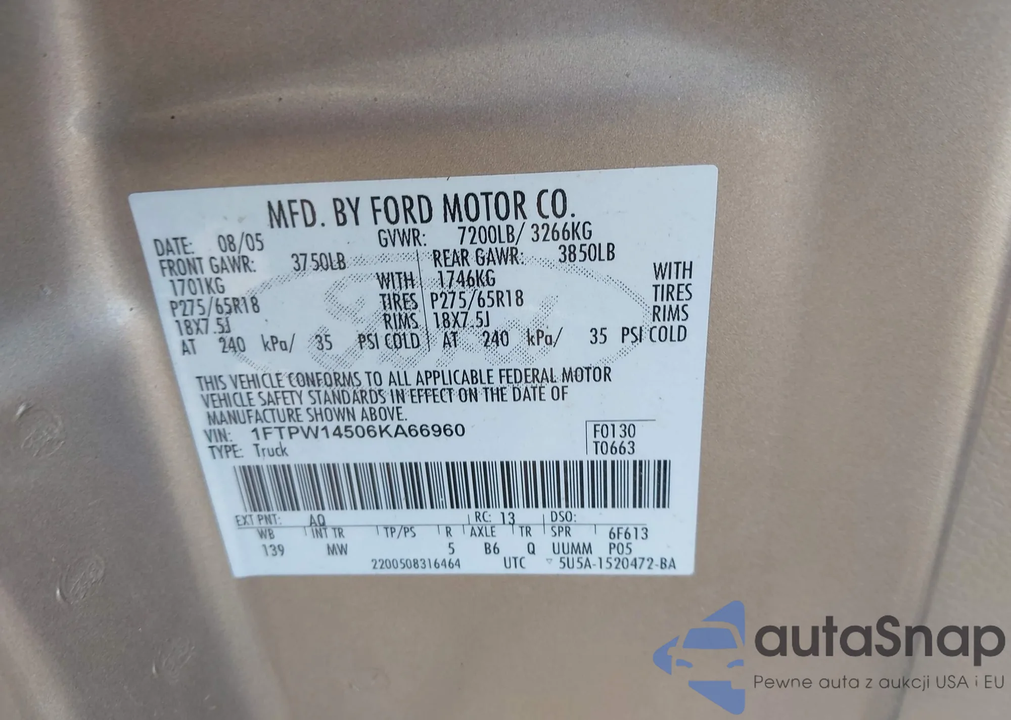 LOT: 43091437 VIN: 1FTPW14506KA66960