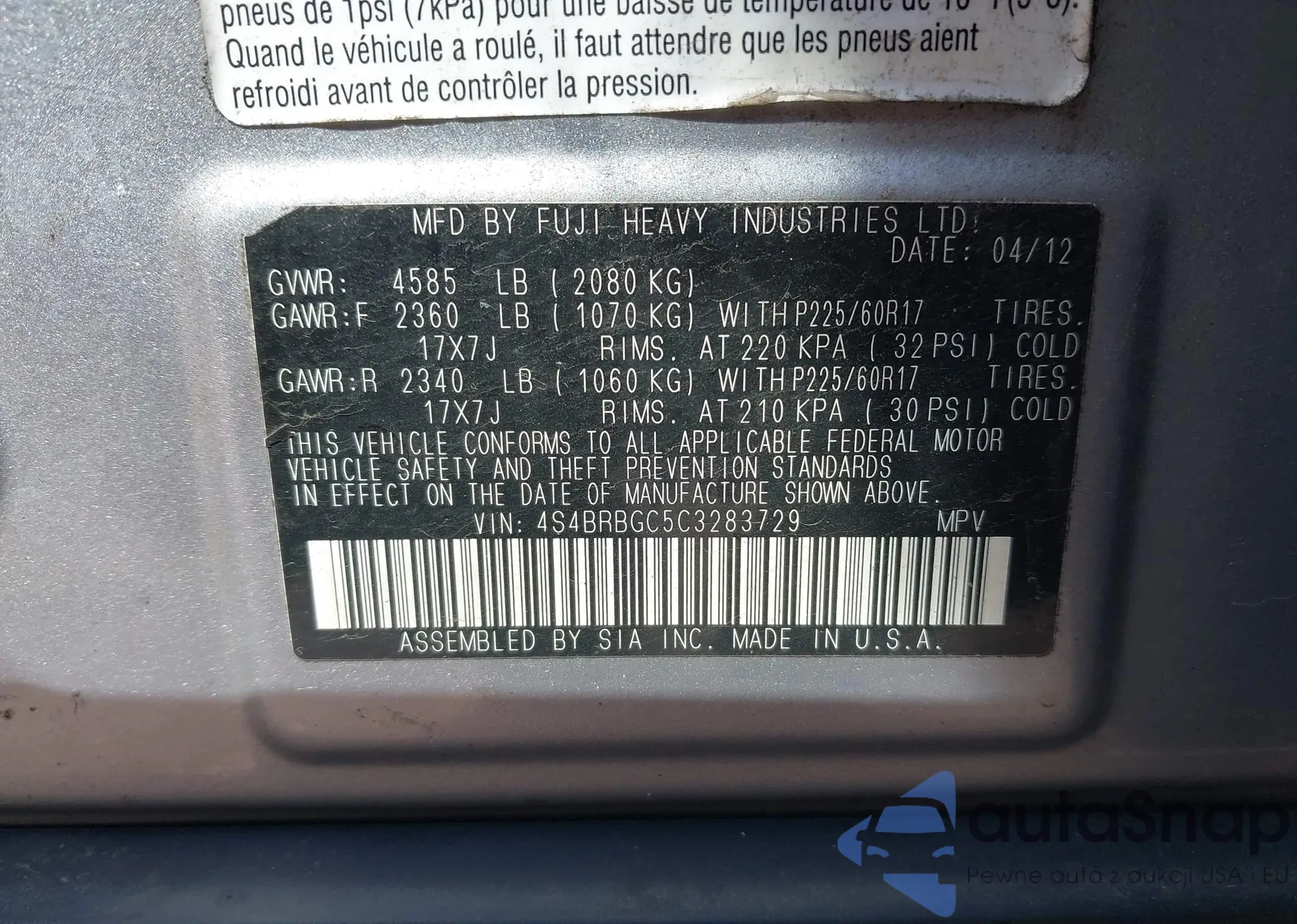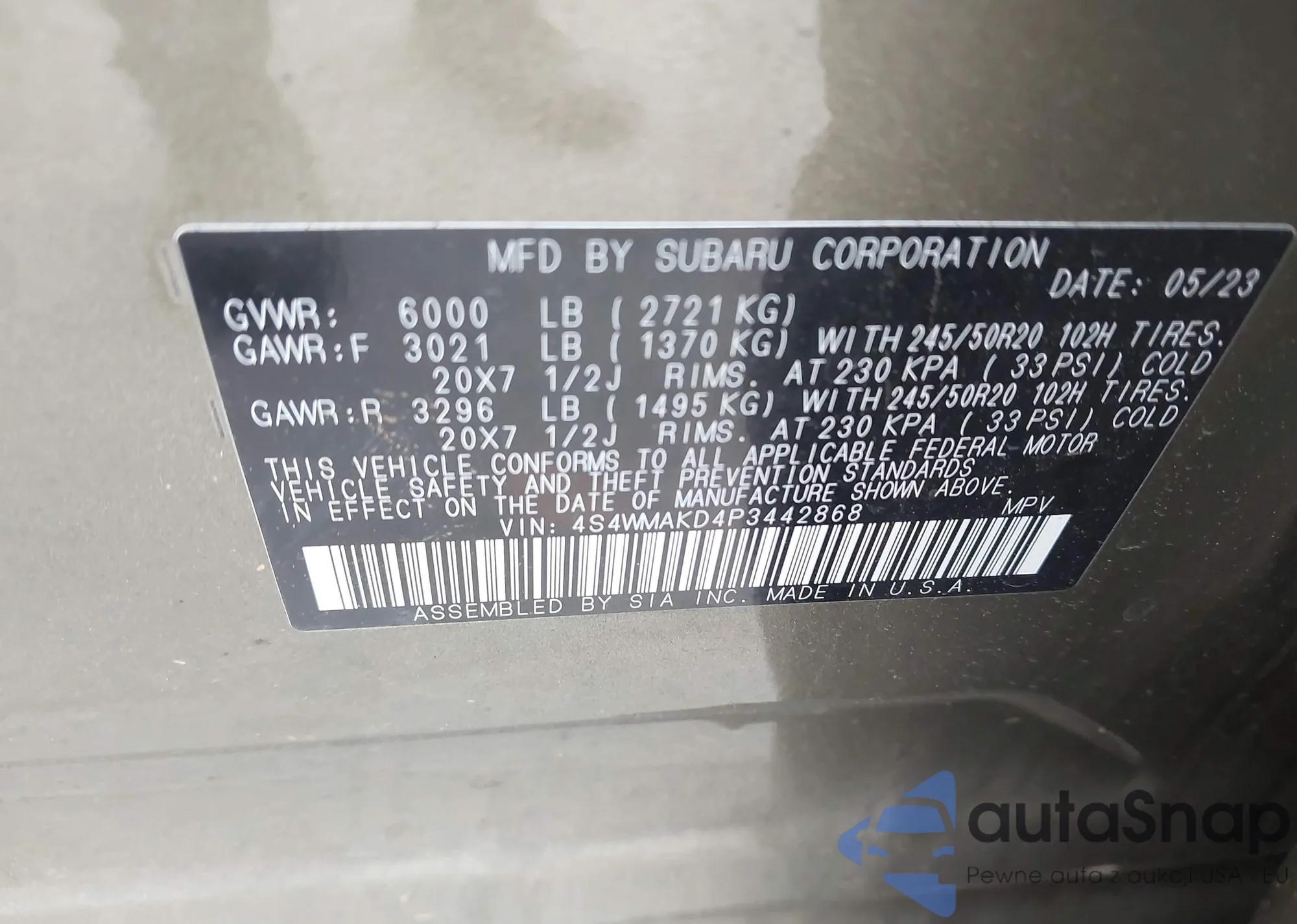 • VIN 4S4WMAKD4P3442868
