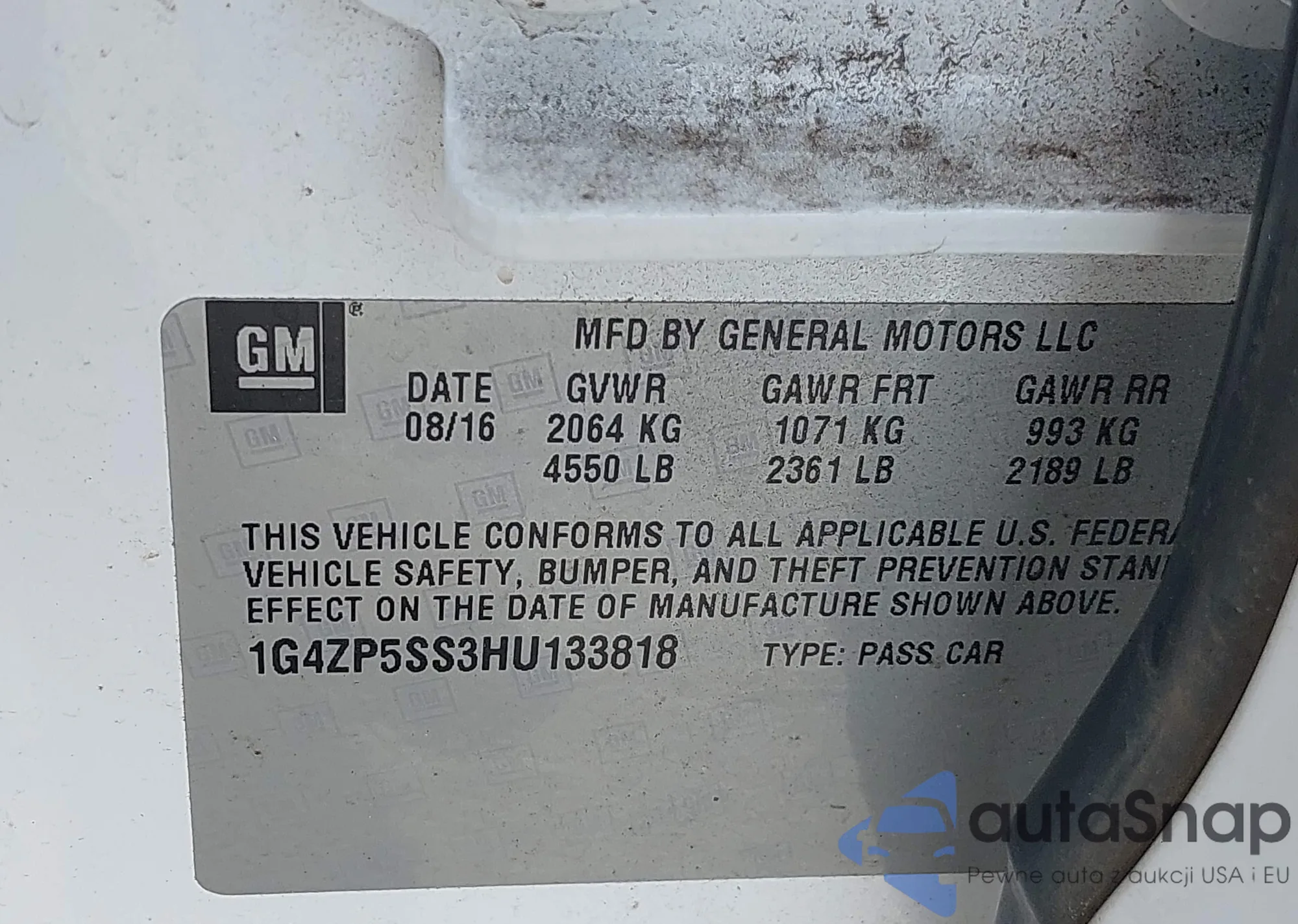 • VIN 1G4ZP5SS3HU133818