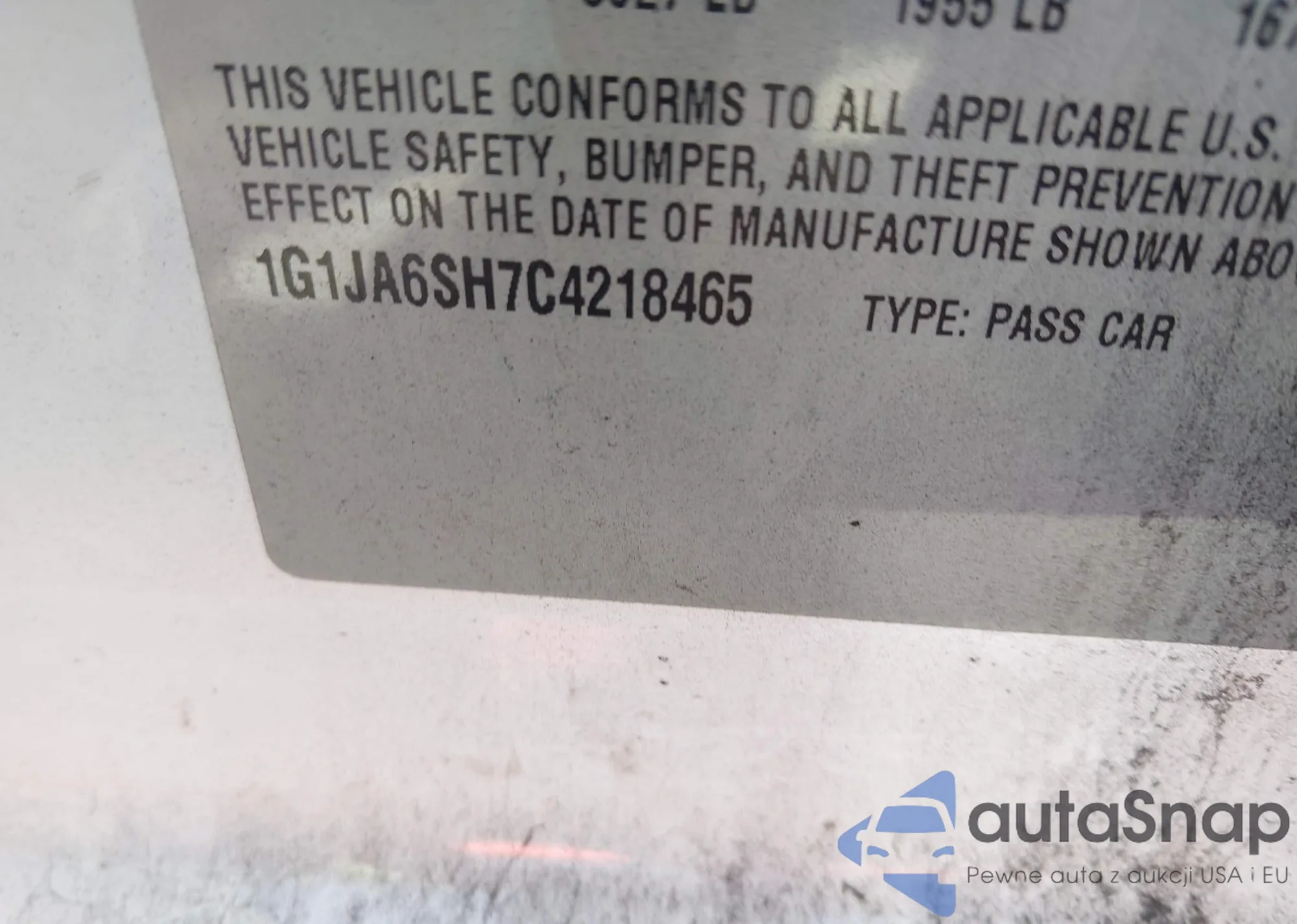 • VIN 1G1JA6SH7C4218465