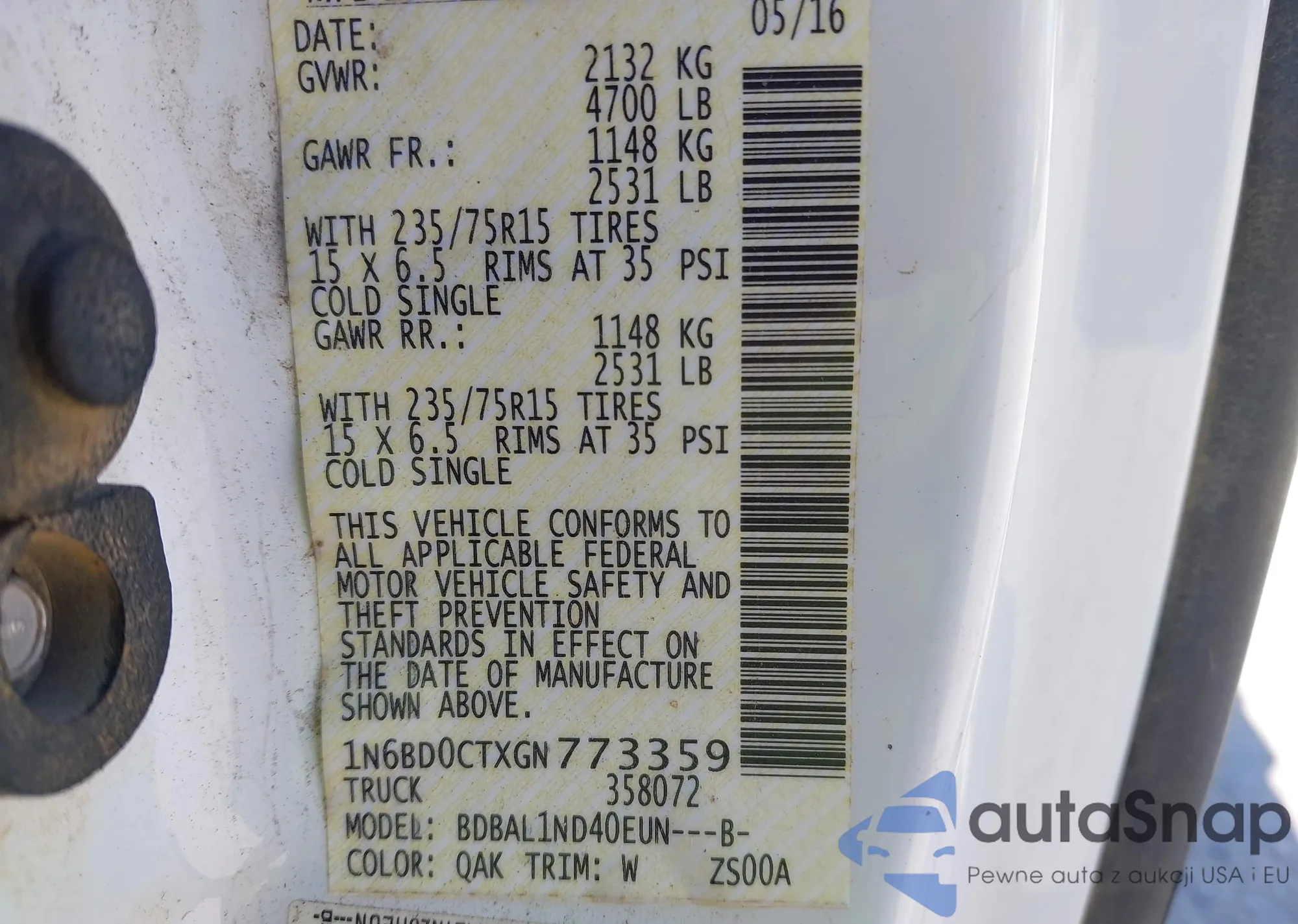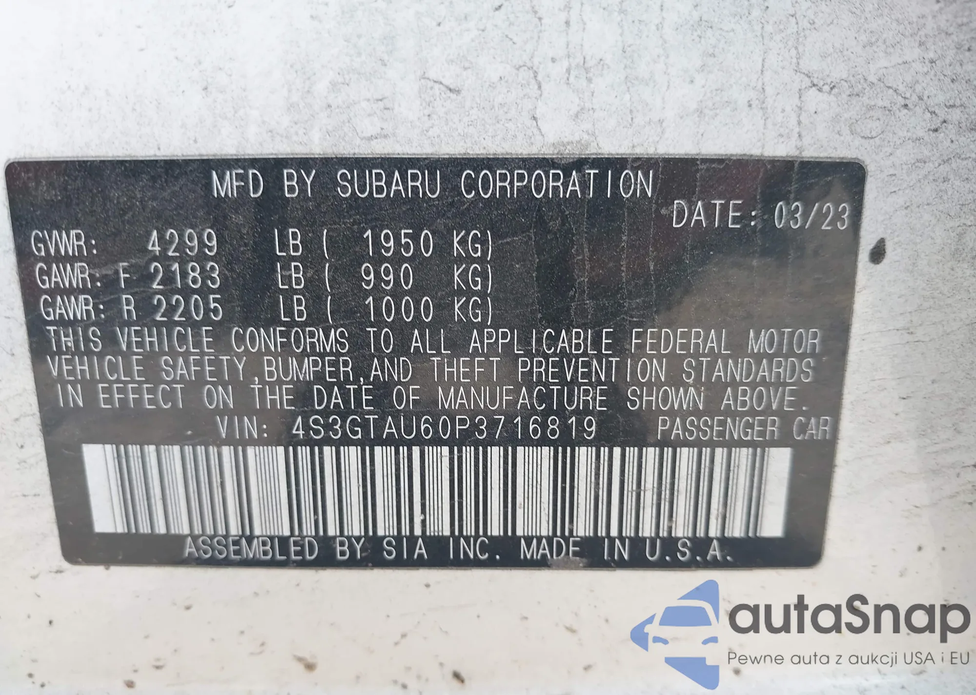 • VIN 4S3GTAU60P3716819