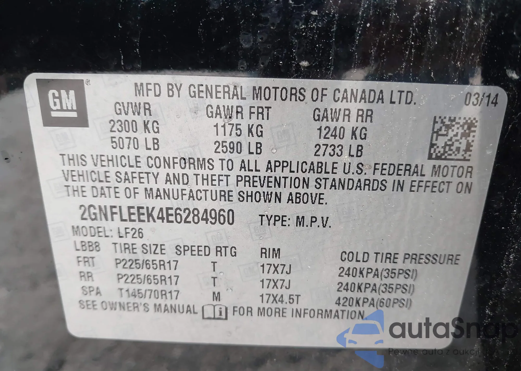 LOT: 43429101 VIN: 5NPEB4AC5EH882647