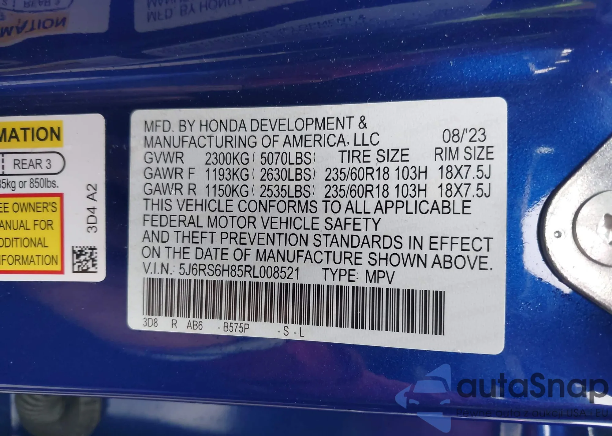 LOT: 43142121 VIN: 1HGCG32551A005825