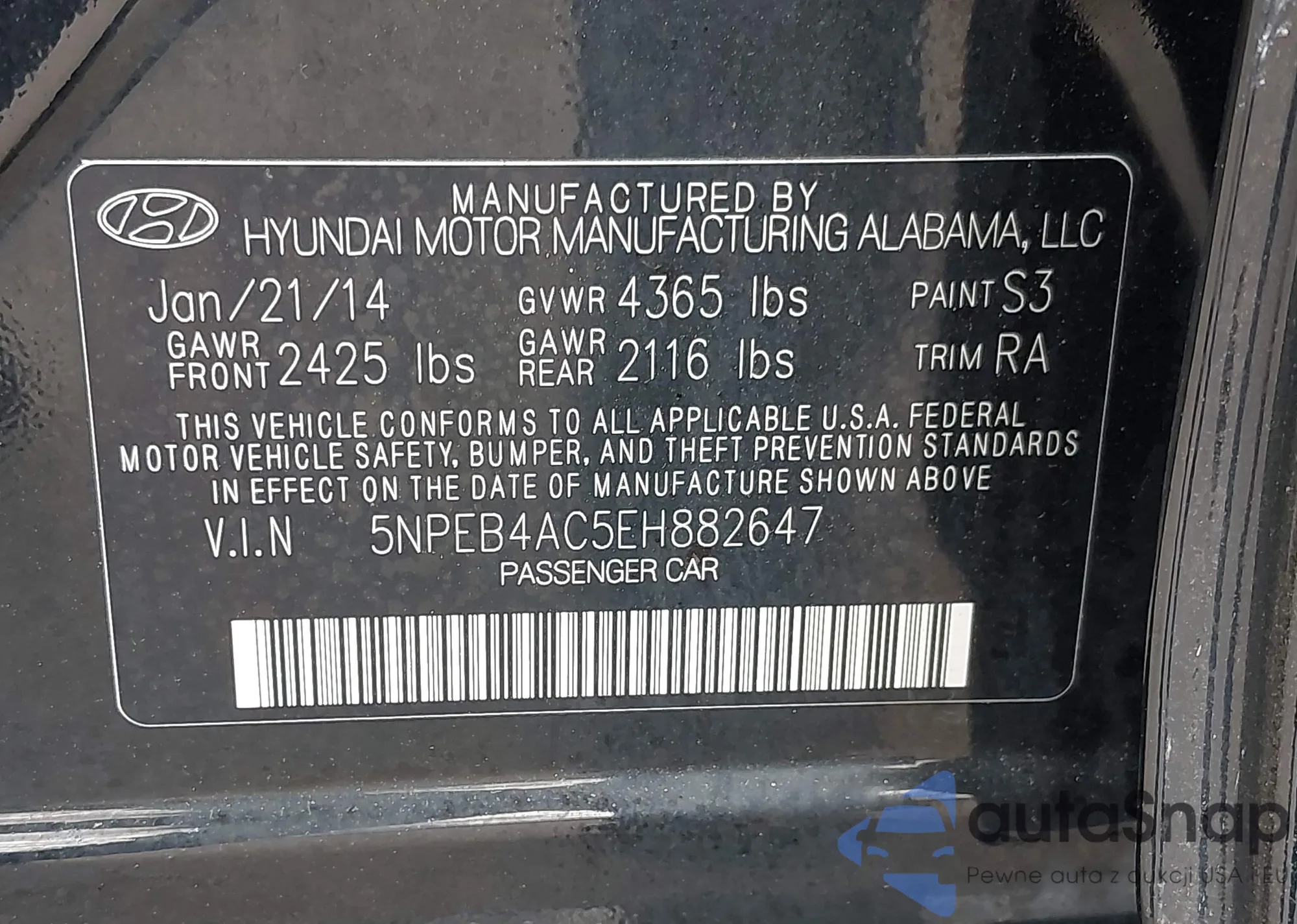 • VIN 5NPEB4AC5EH882647