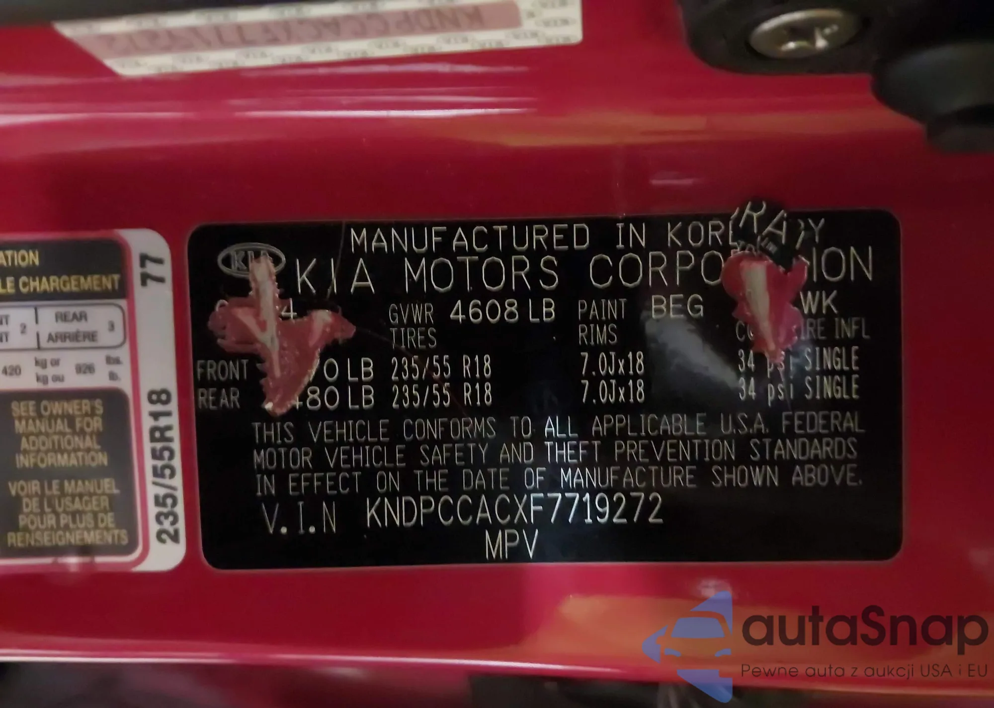 • VIN KNDPCCACXF7719272