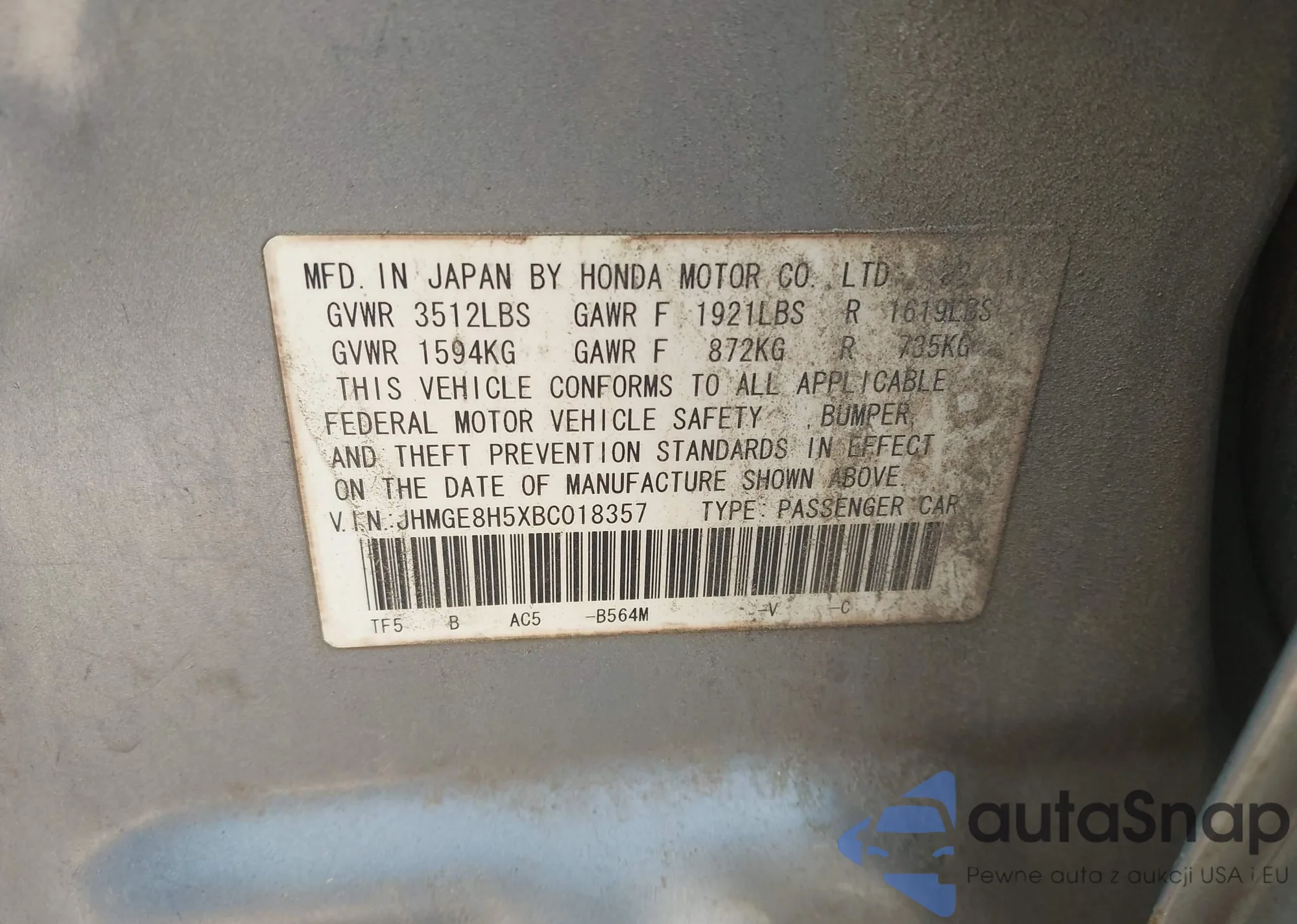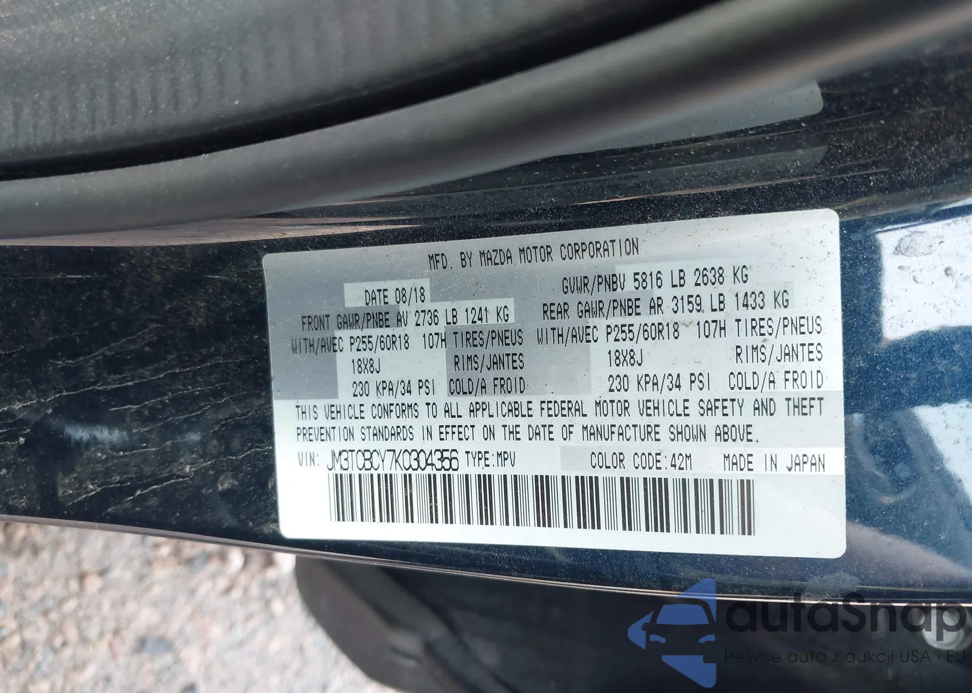 • VIN JM3TCBCY7K0304356
