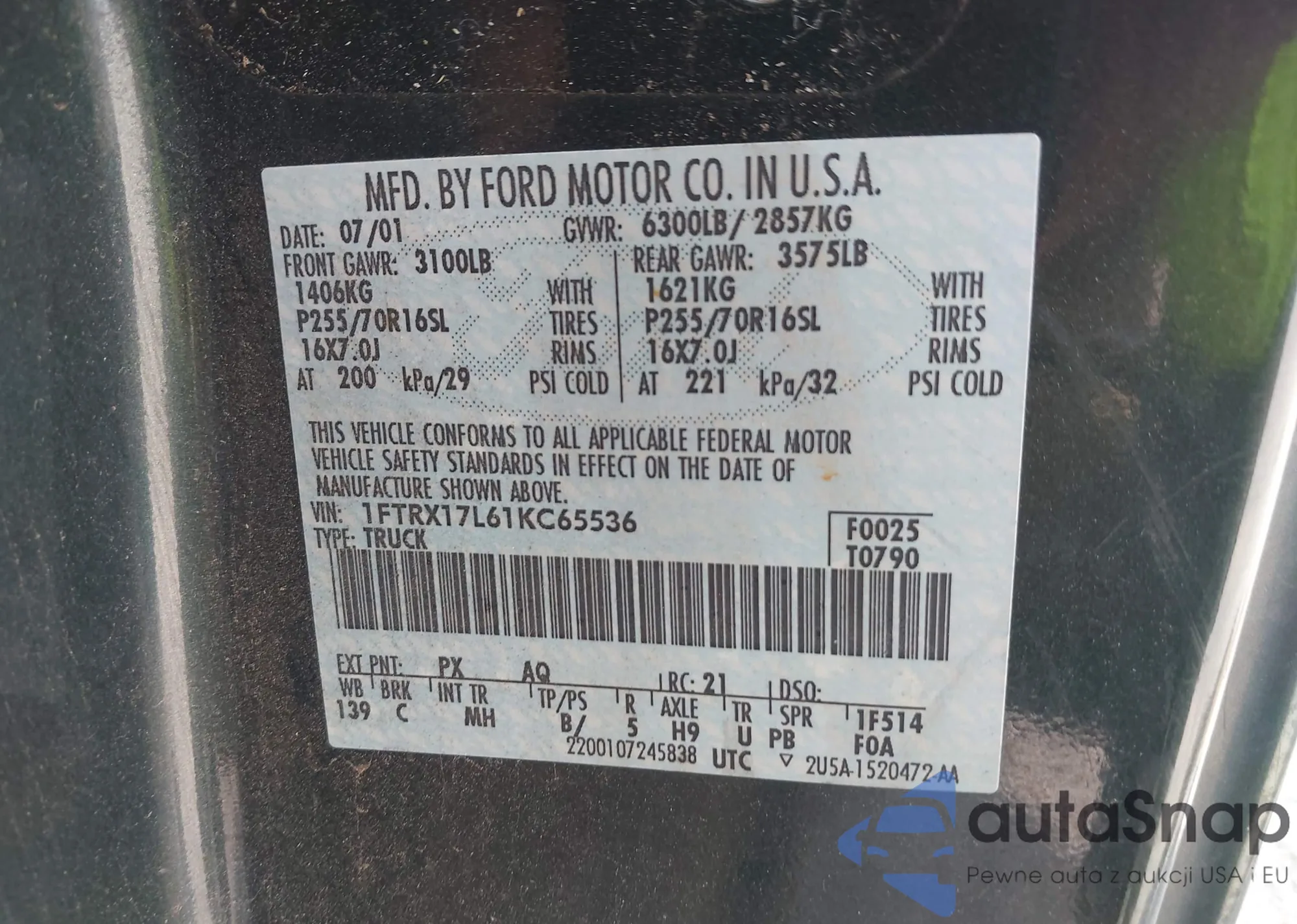 • VIN 1FTRX17L61KC65536
