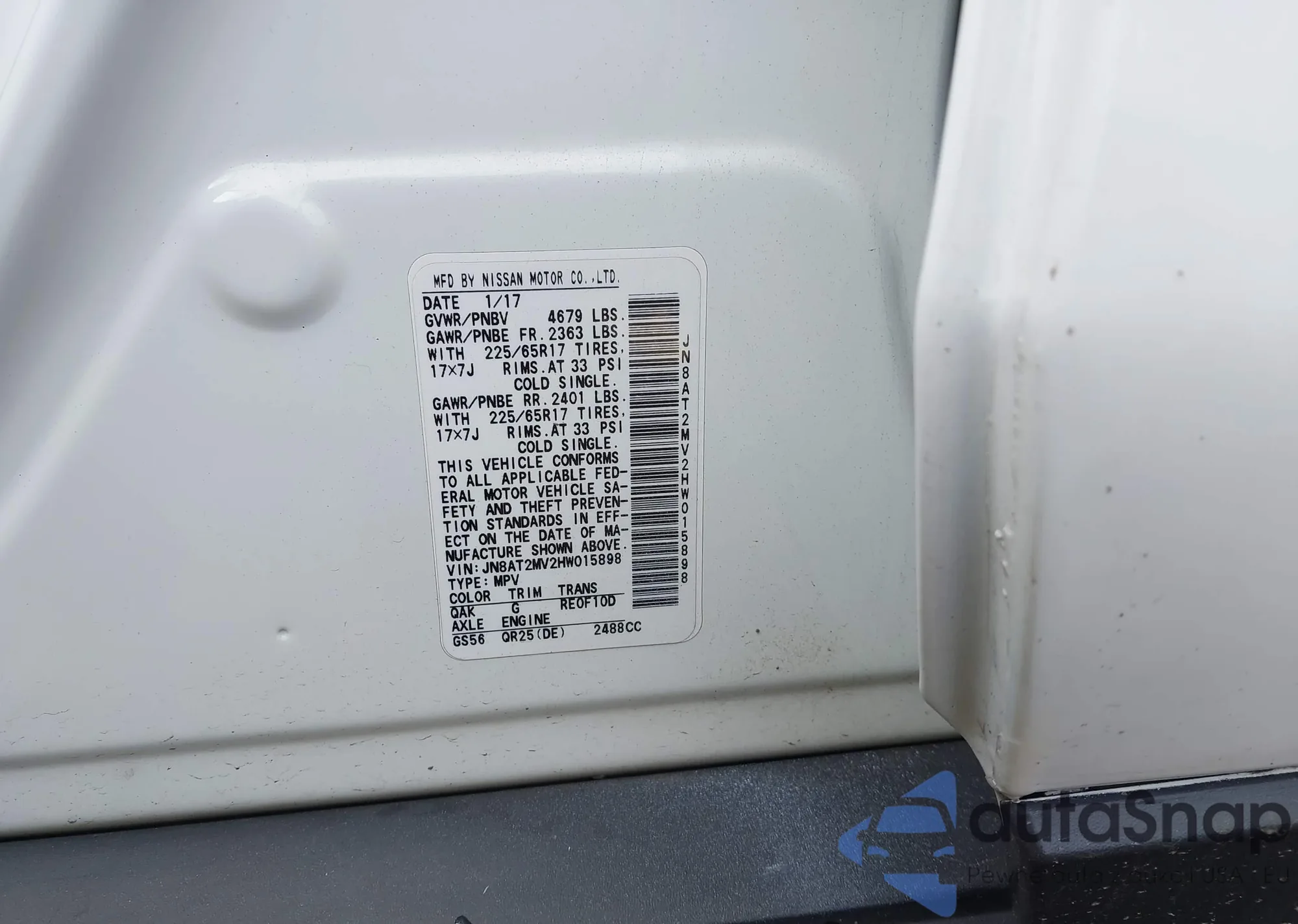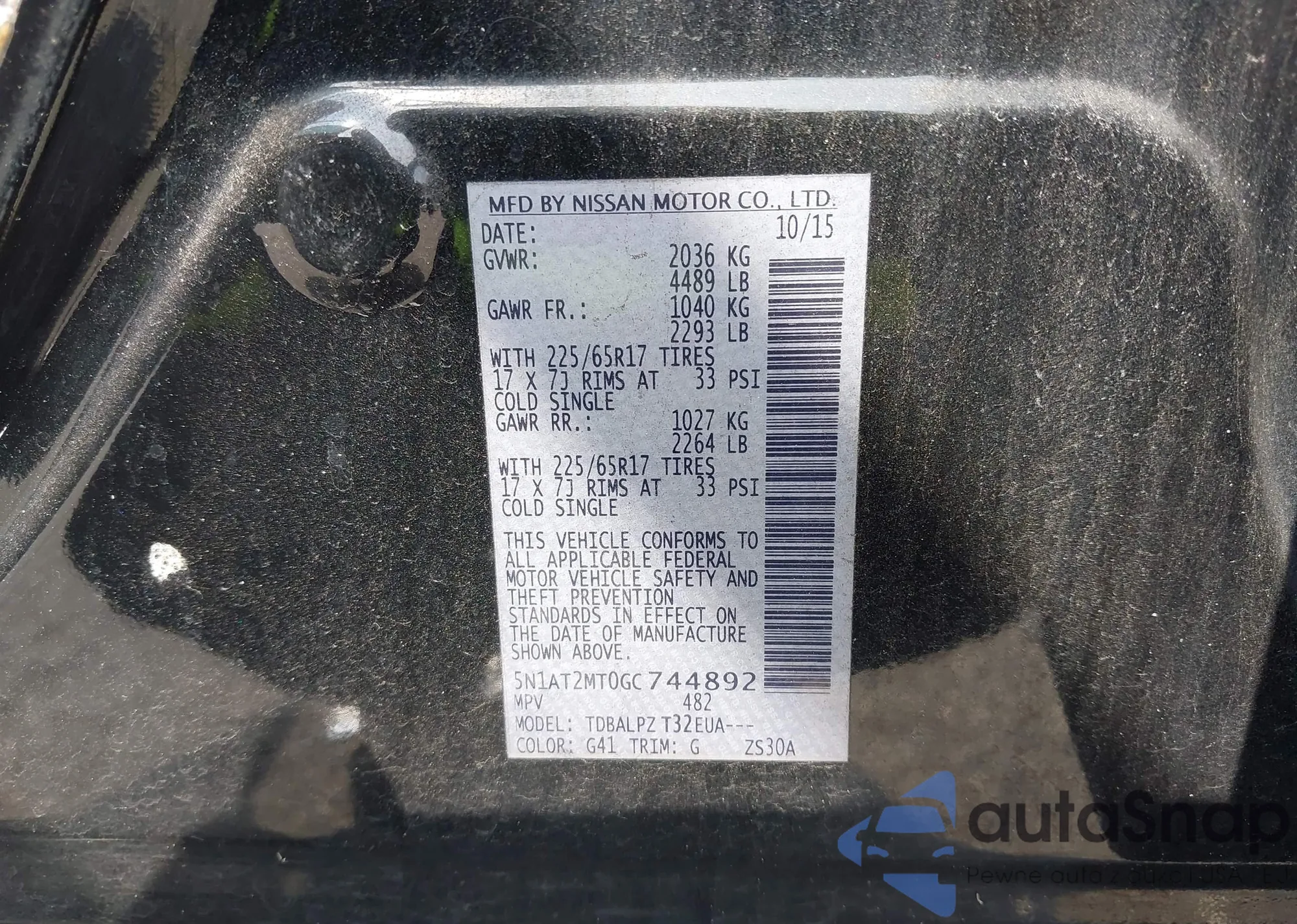 LOT: 43147859 VIN: 5N1AT2MT0GC744892