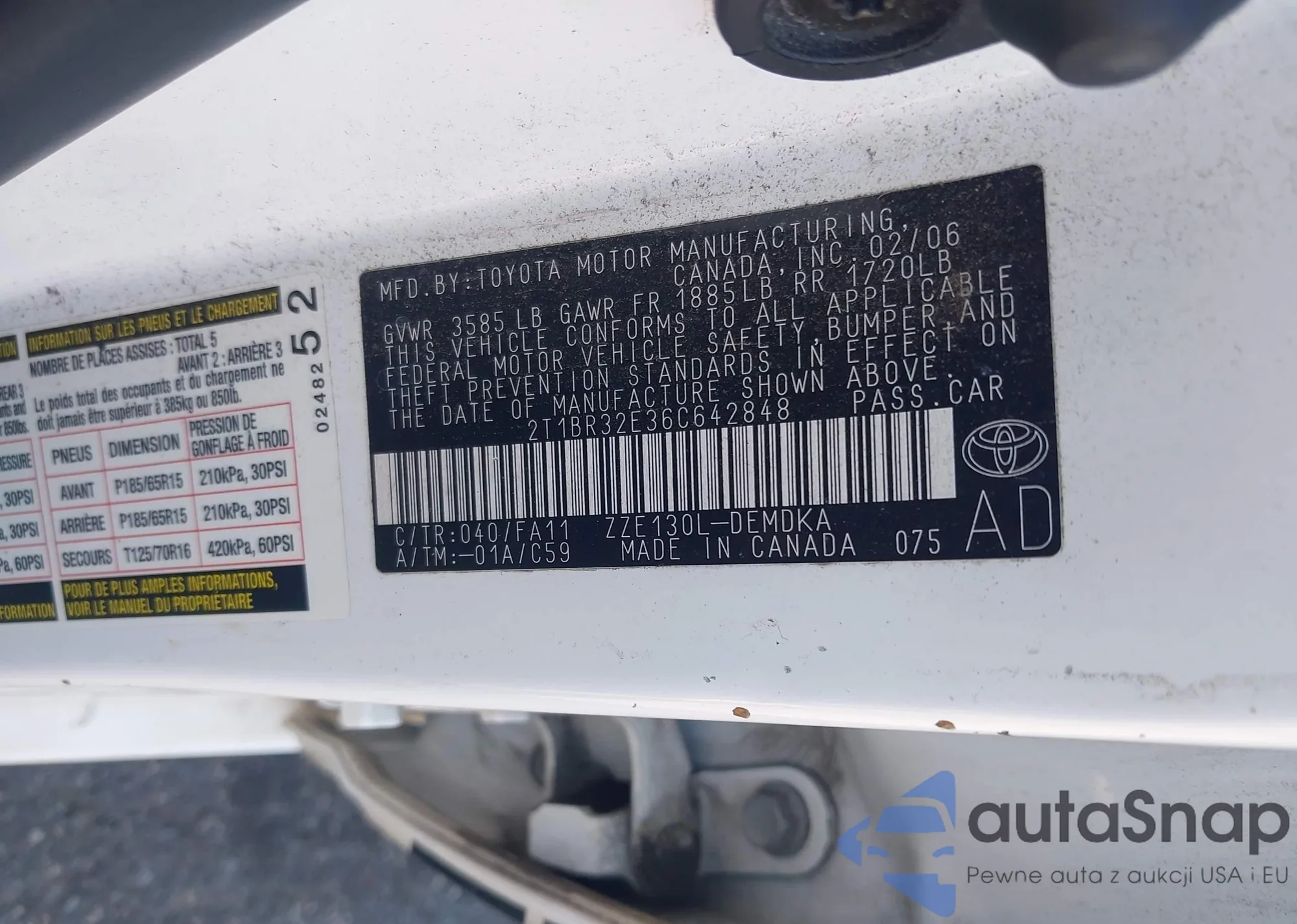 • VIN 2T1BR32E36C642848