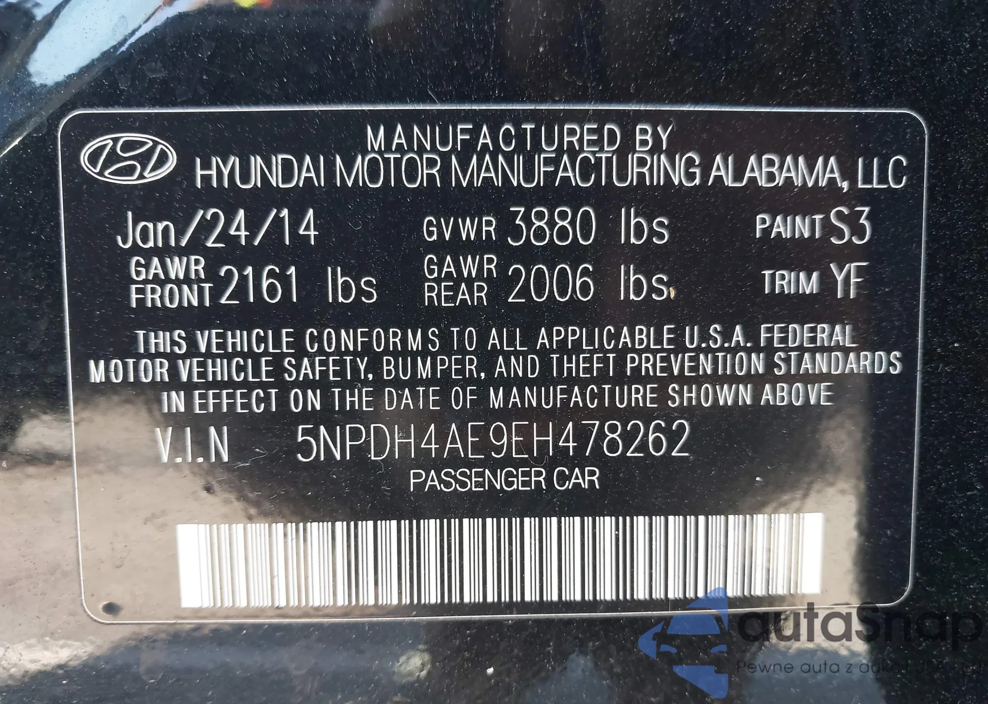 • VIN 5NPDH4AE9EH478262