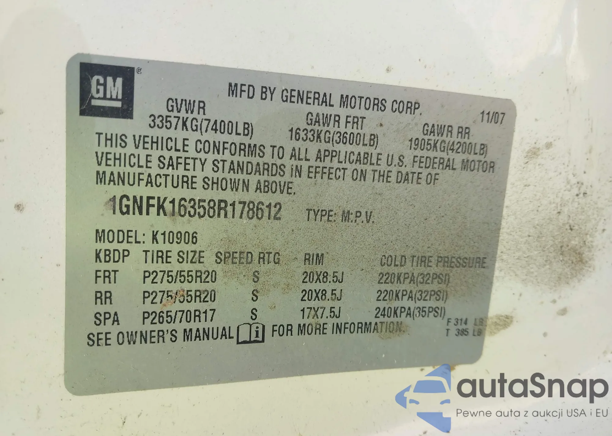 LOT: 43179914 VIN: 1GNFK16358R178612