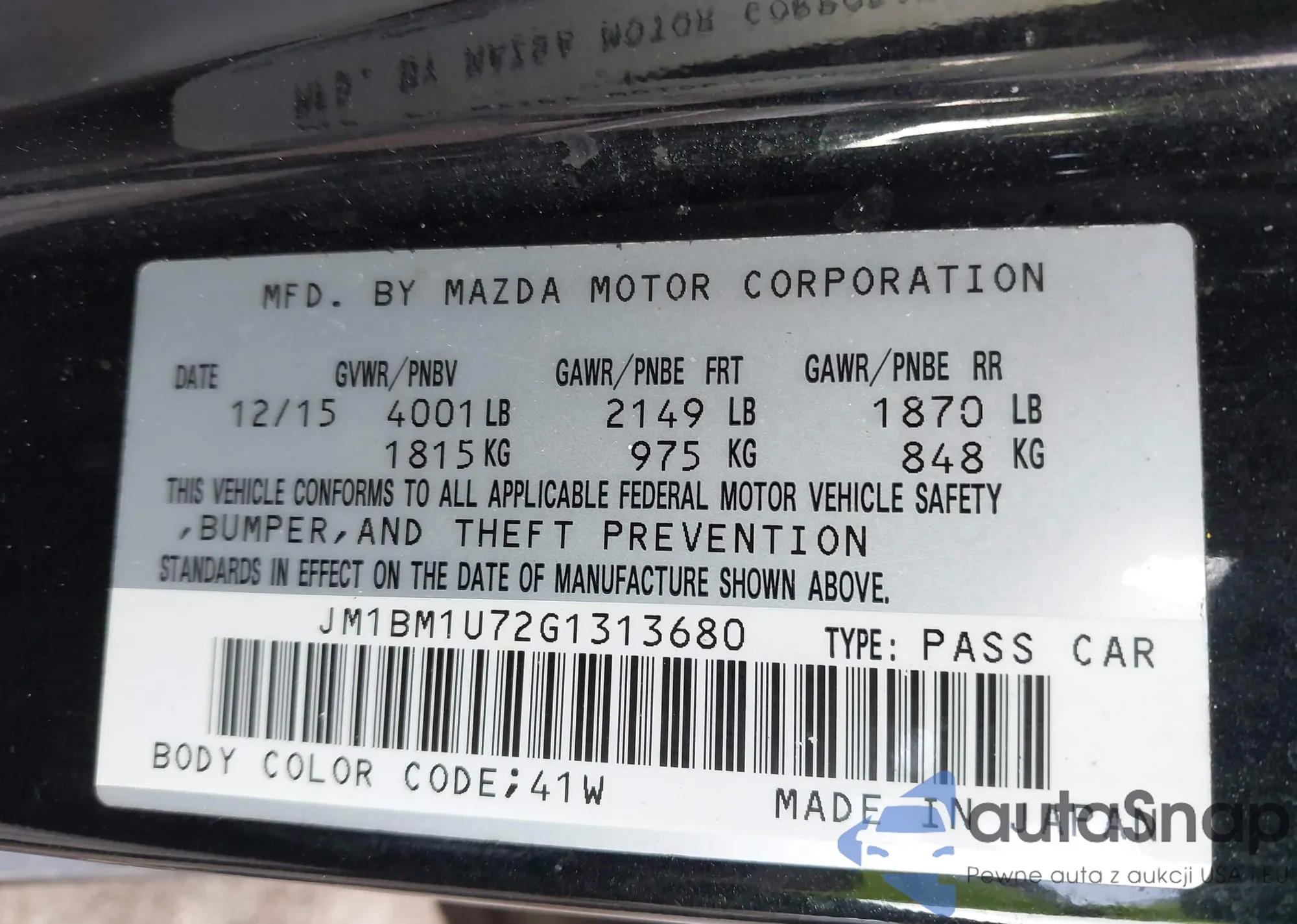 LOT: 43204777 VIN: JM1BM1U72G1313680