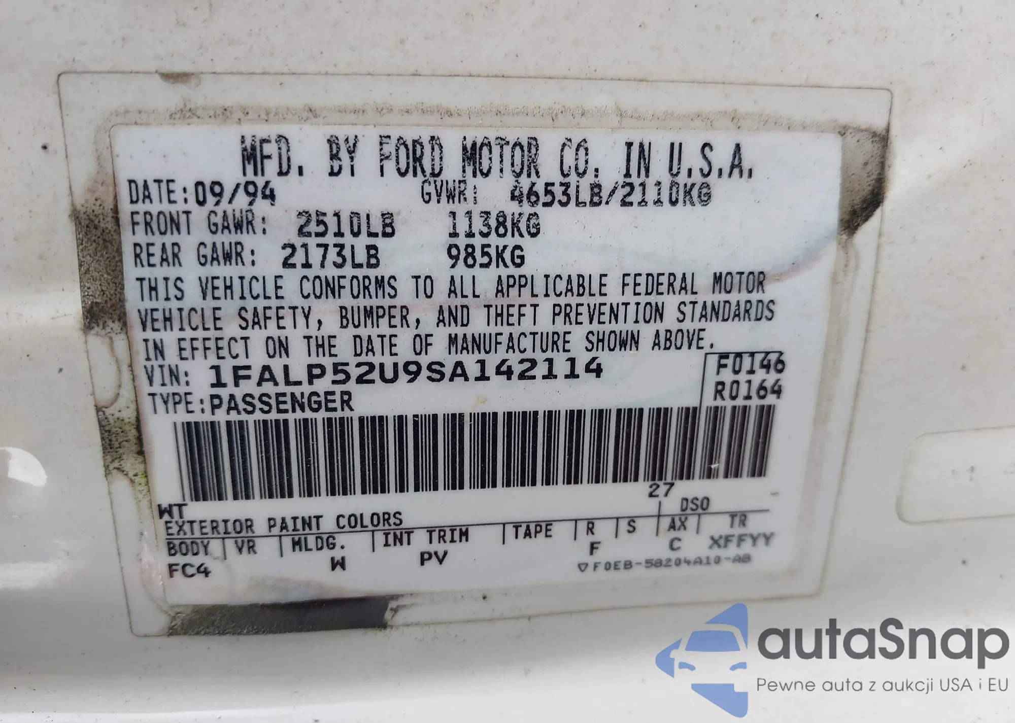 • VIN 1FALP52U9SA142114