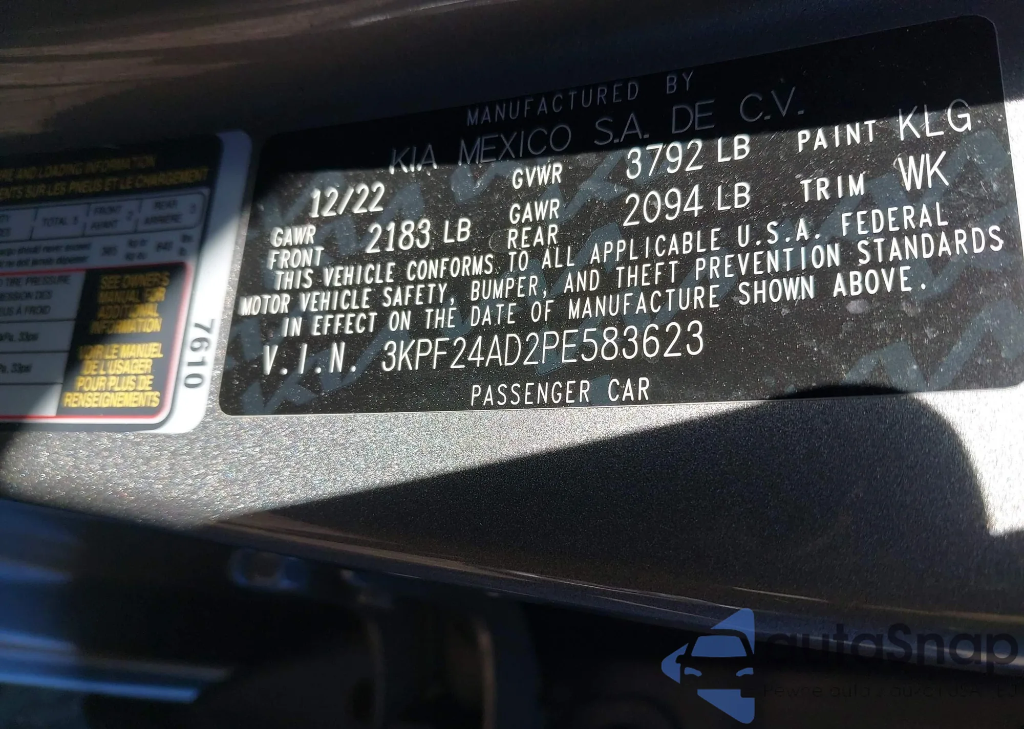 • VIN 3KPF24AD2PE583623