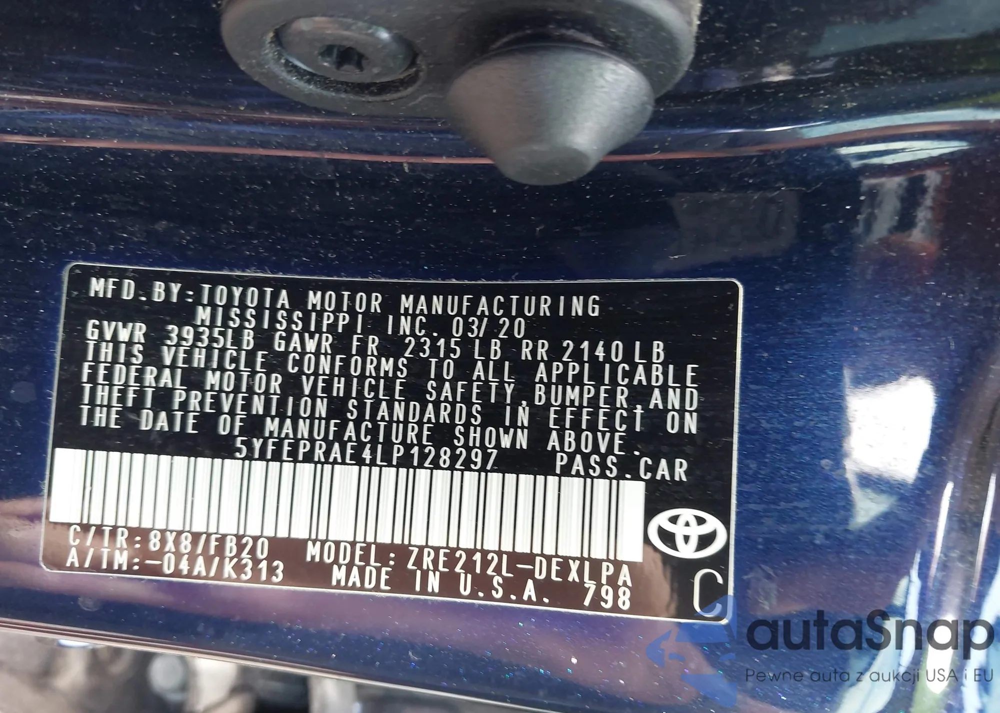 LOT: 43102481 VIN: 5YFEPRAE4LP128297