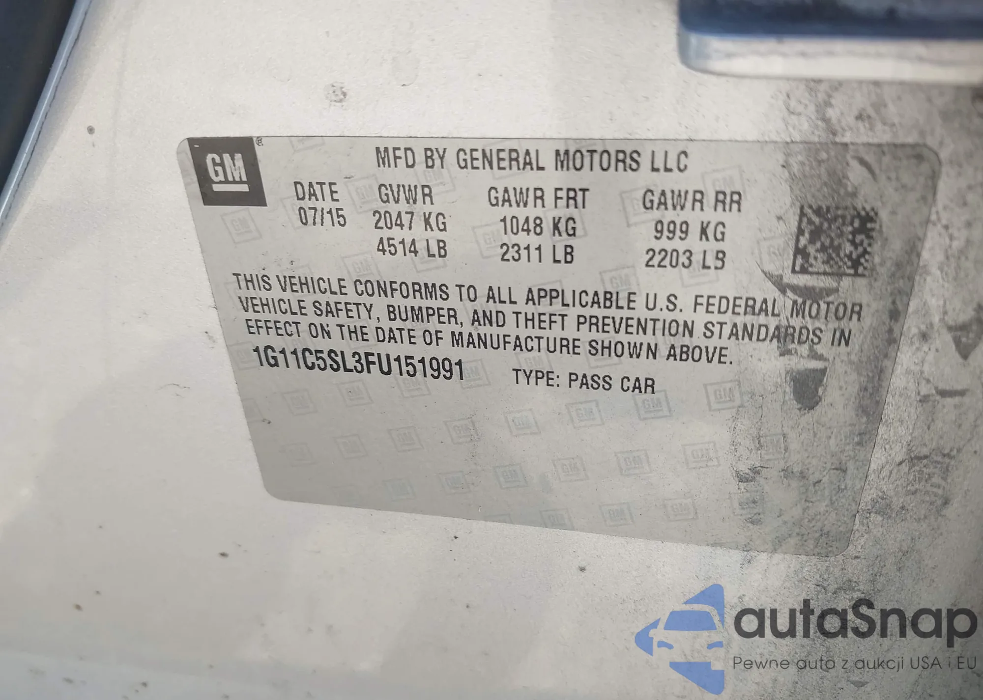 LOT: 43114474 VIN: 1G11C5SL3FU151991