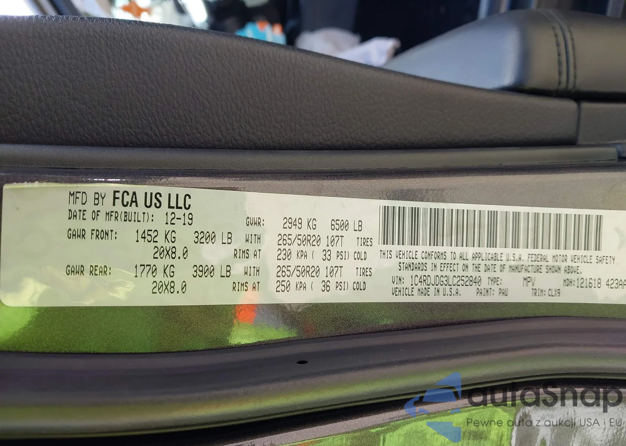 • VIN 1C4RDJDG3LC252840