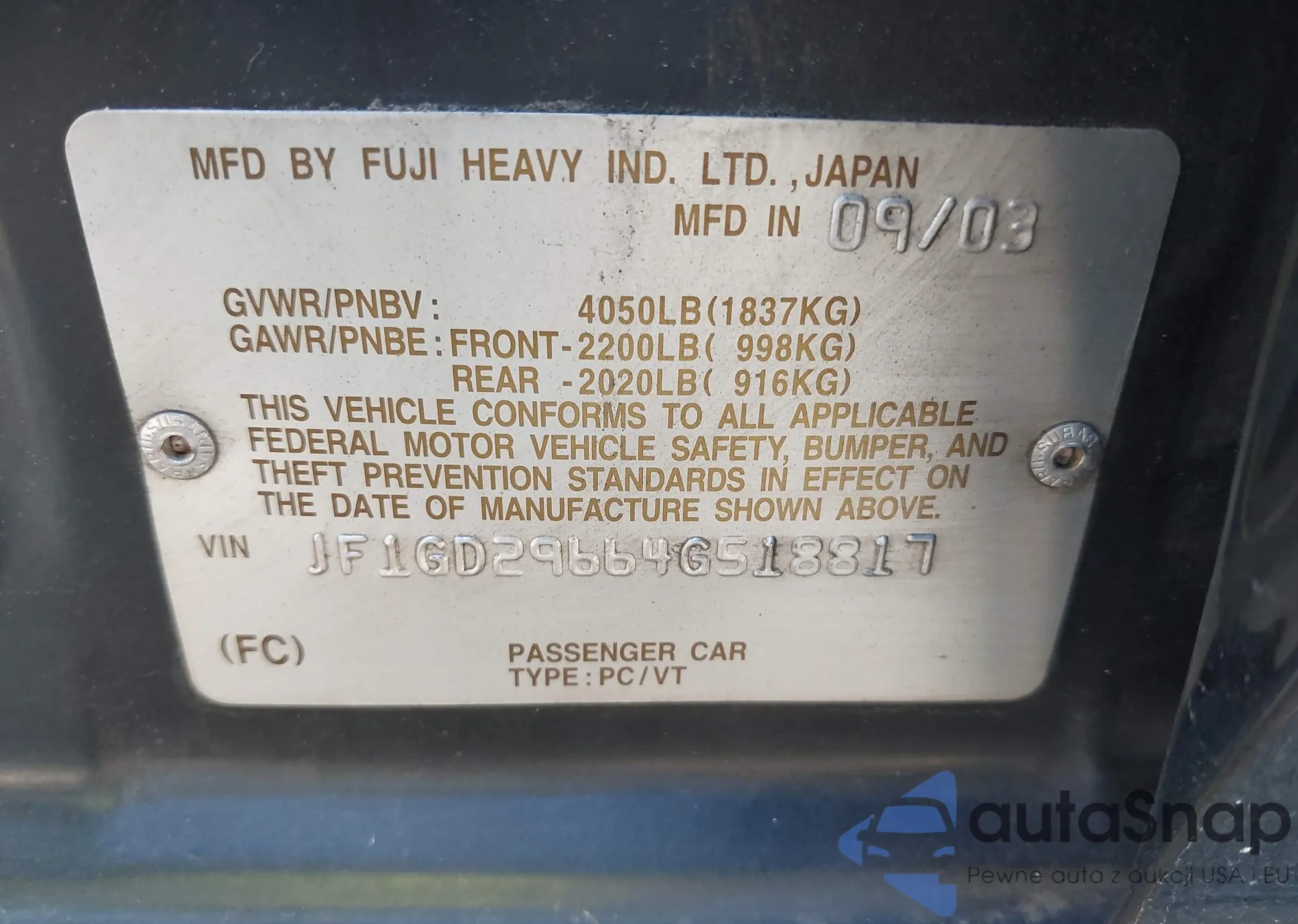 LOT: 42878589 VIN: SHSRD78905U318080