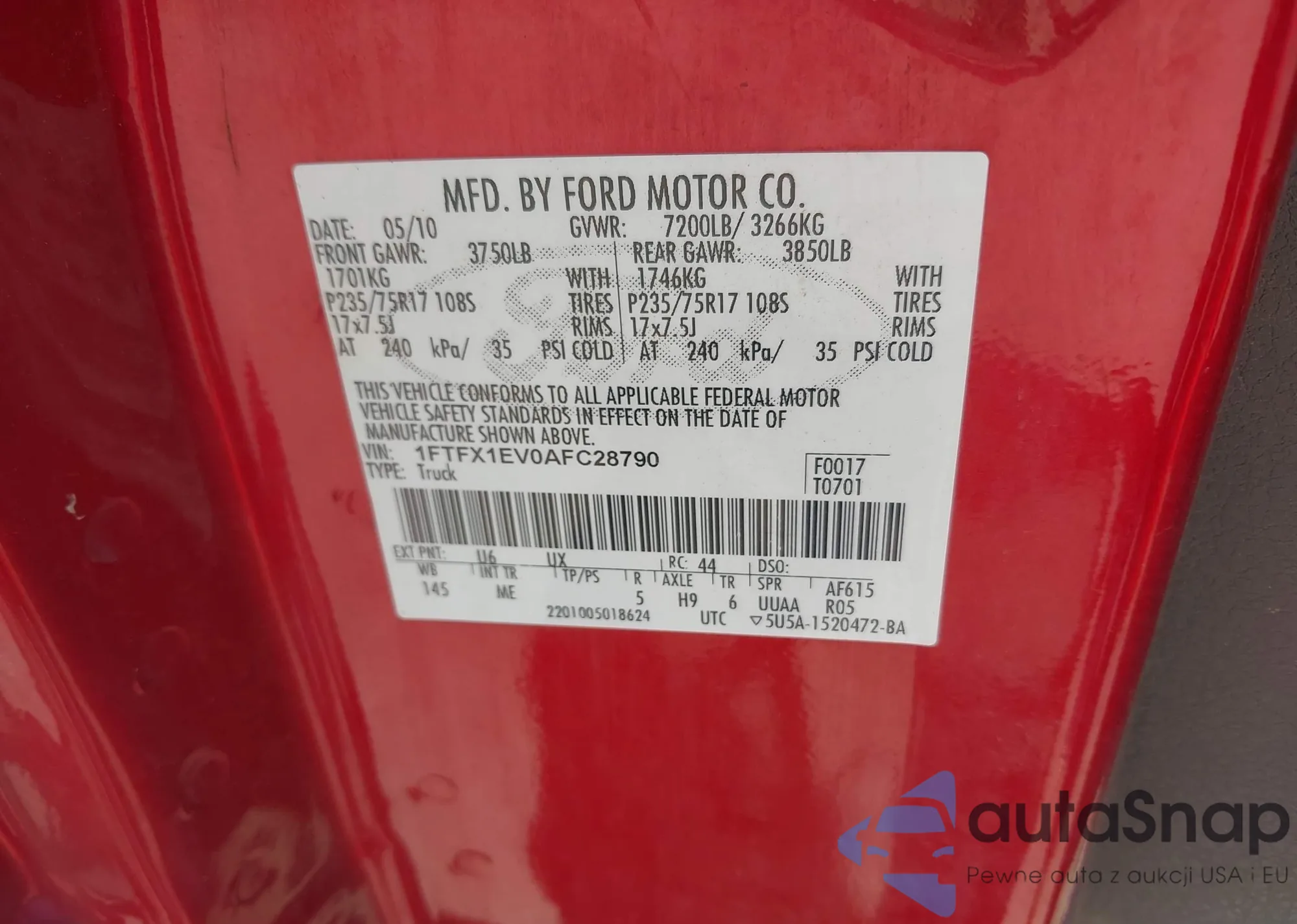 • VIN 1FTFX1EV0AFC28790