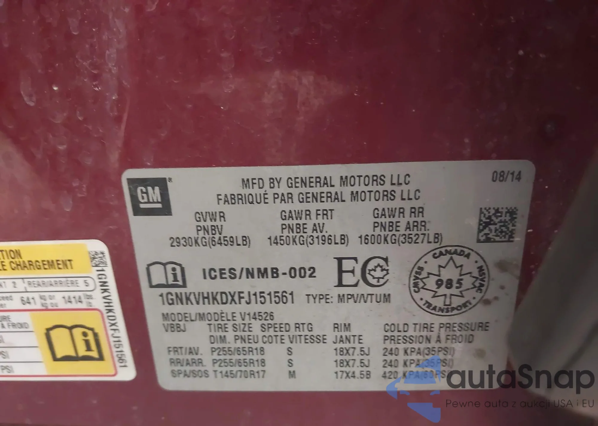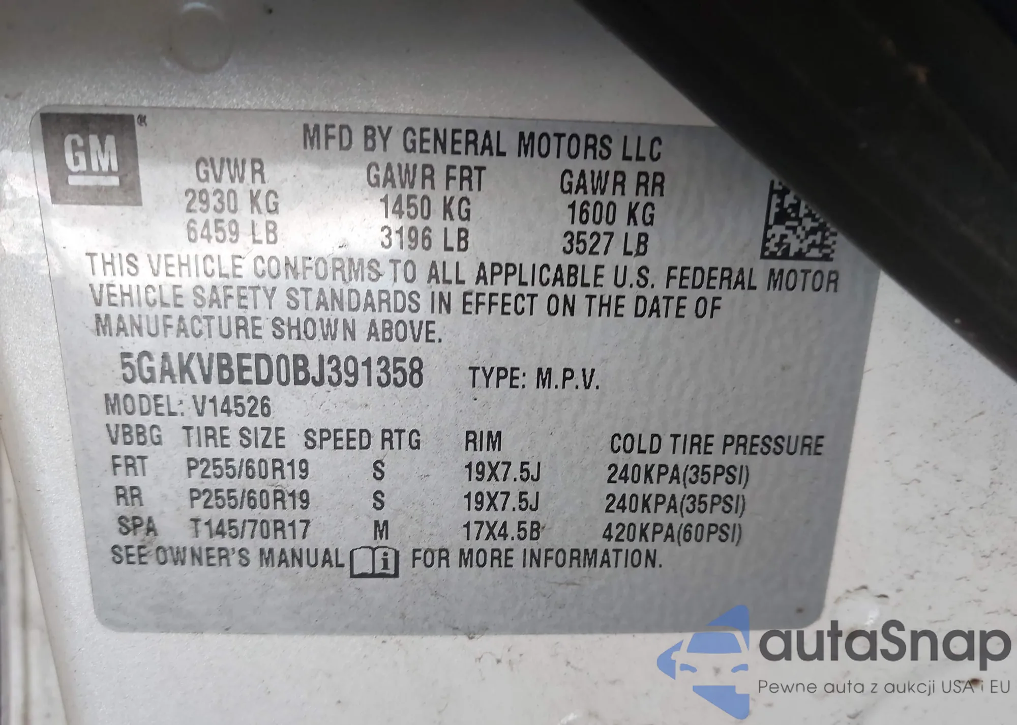 • VIN 5GAKVBED0BJ391358
