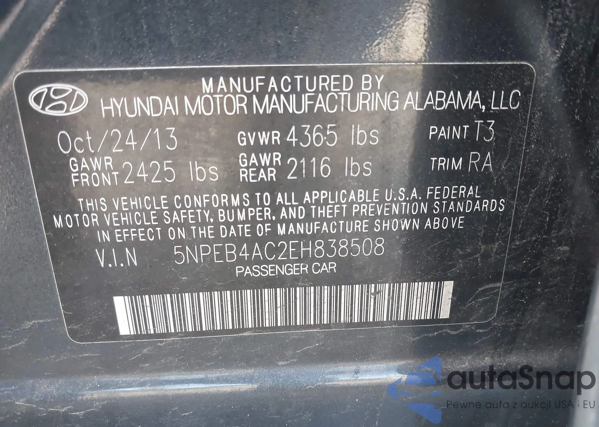 • VIN 5NPEB4AC2EH838508