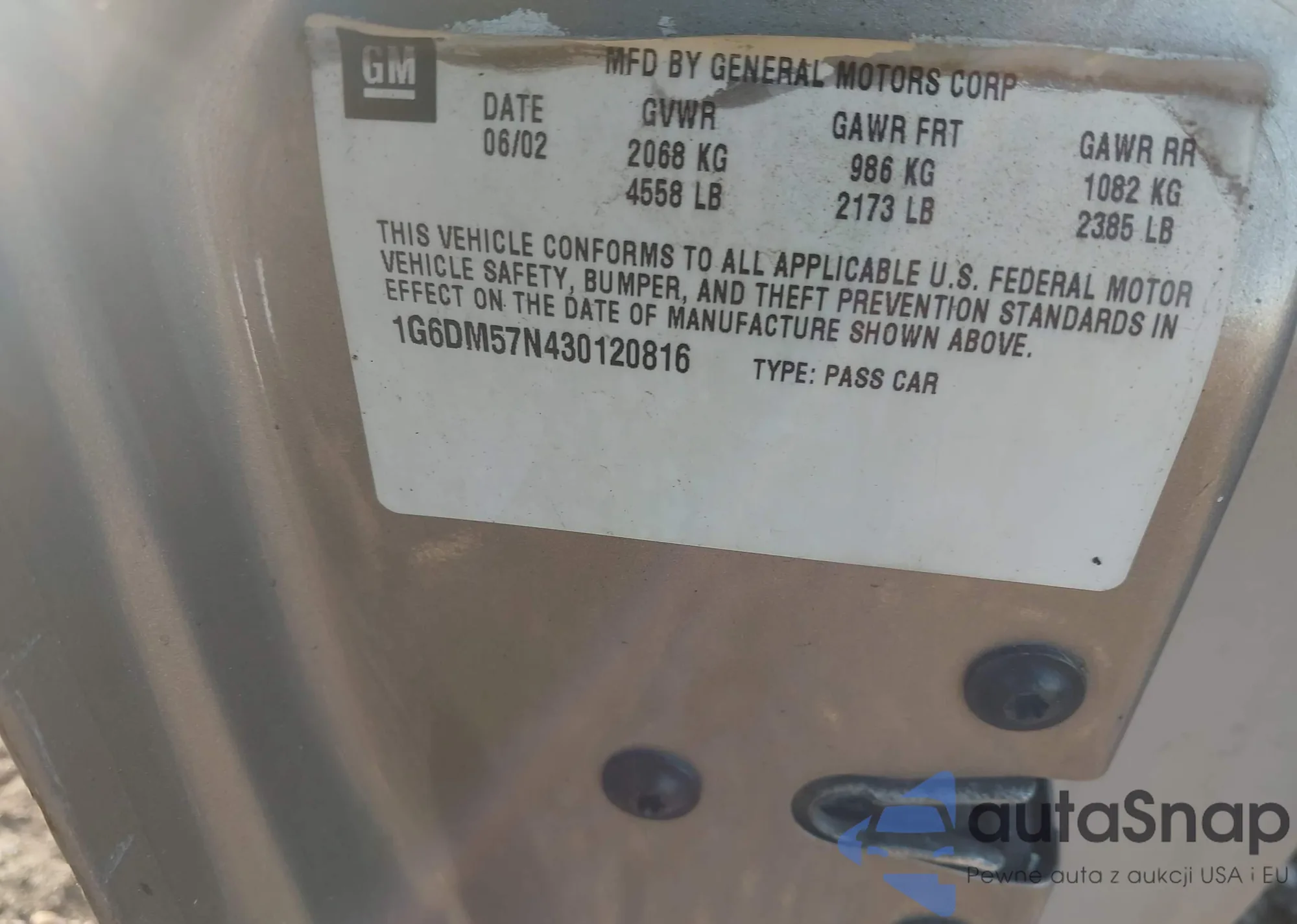 LOT: 43118125 VIN: WMWSY3C54DT594314