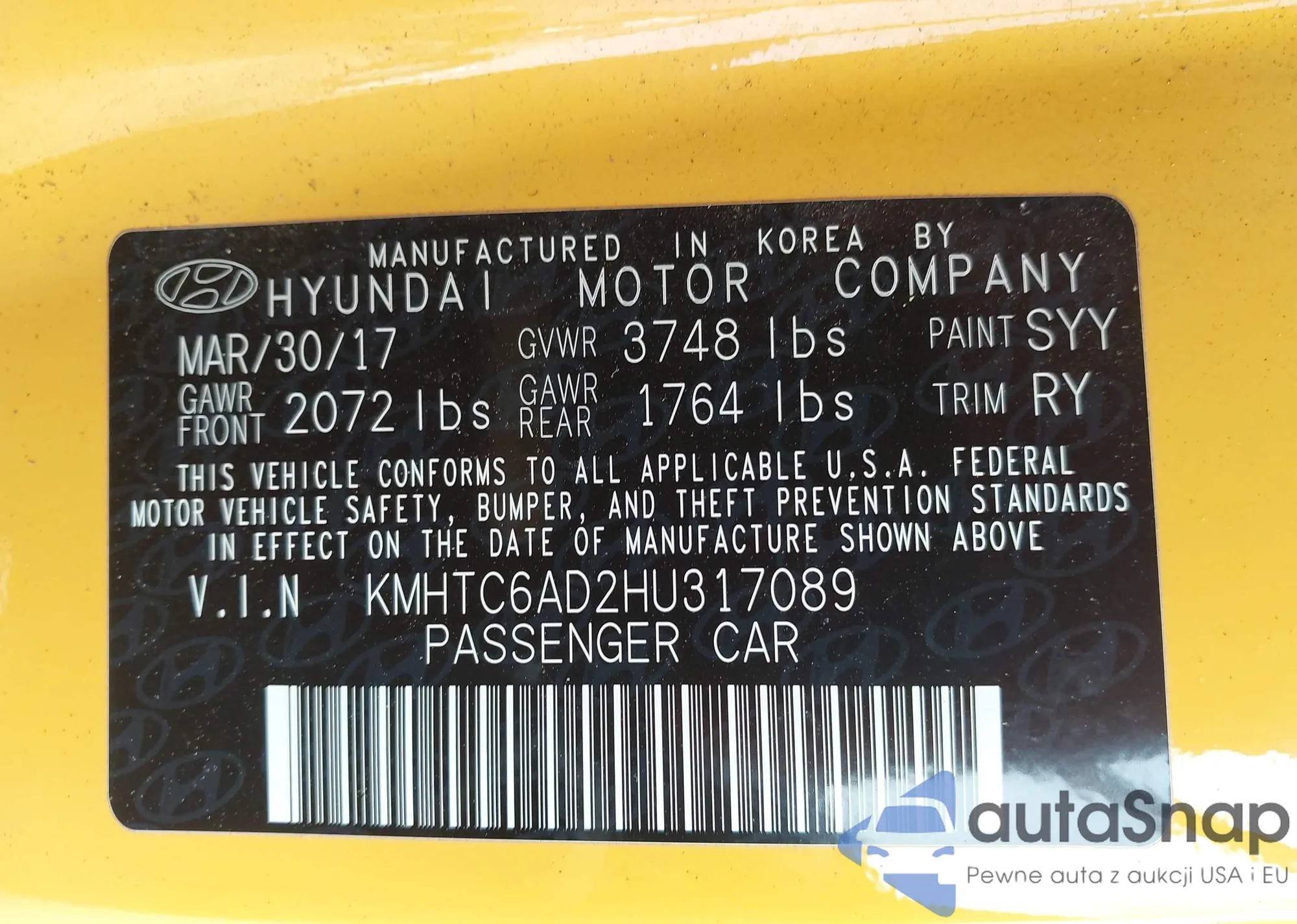 • VIN KMHTC6AD2HU317089