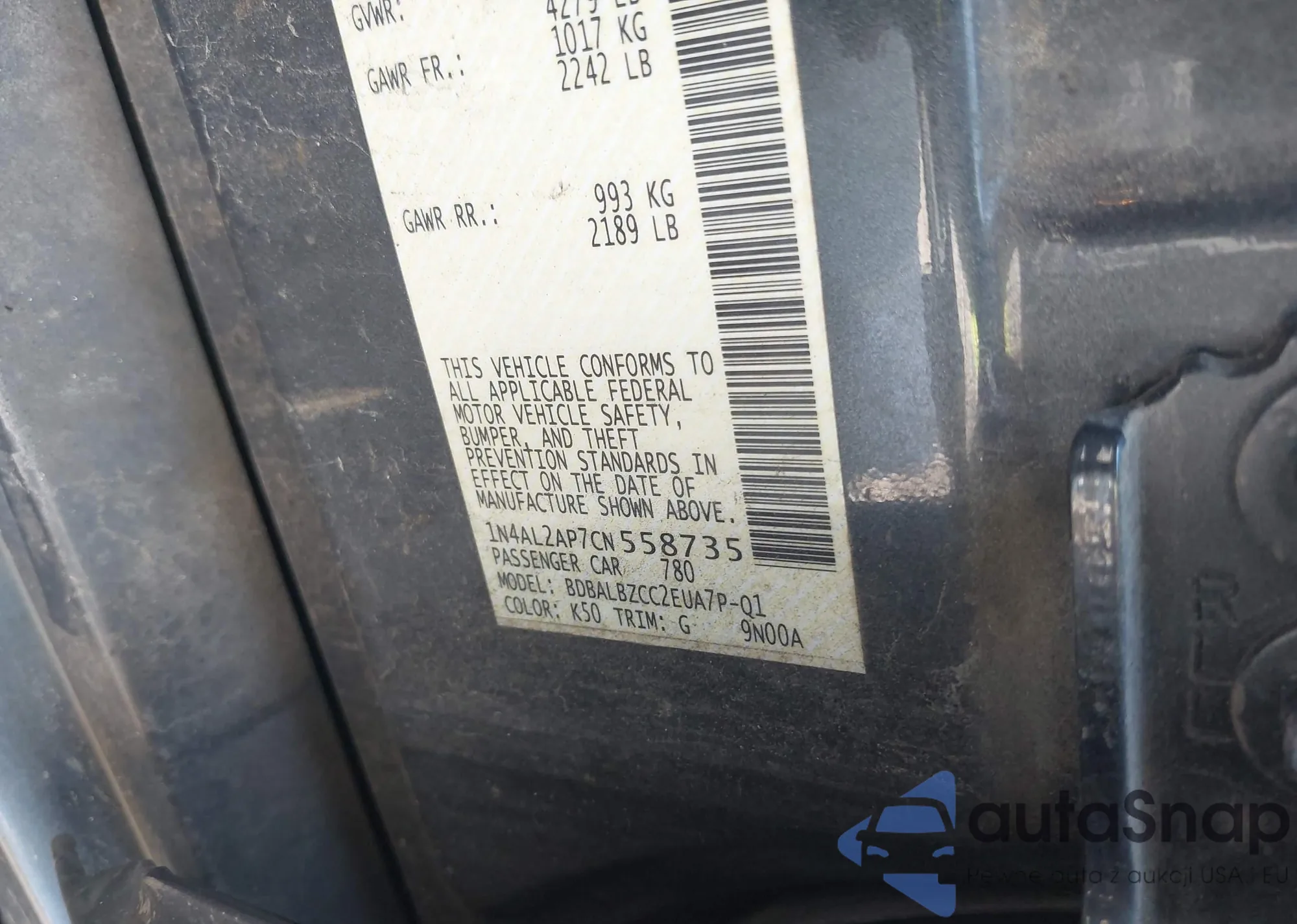 • VIN 1N4AL2AP7CN558735