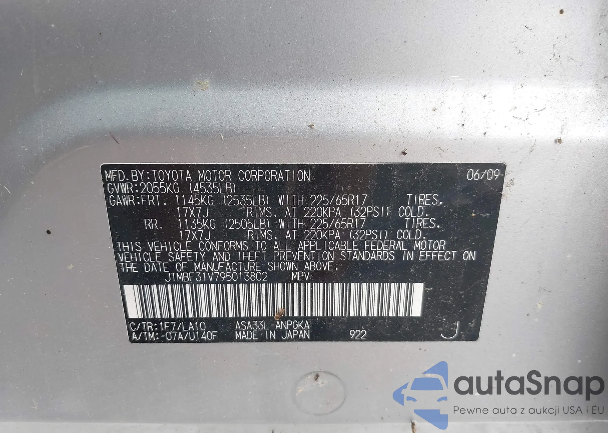• VIN KL8CD6SA2MC742570