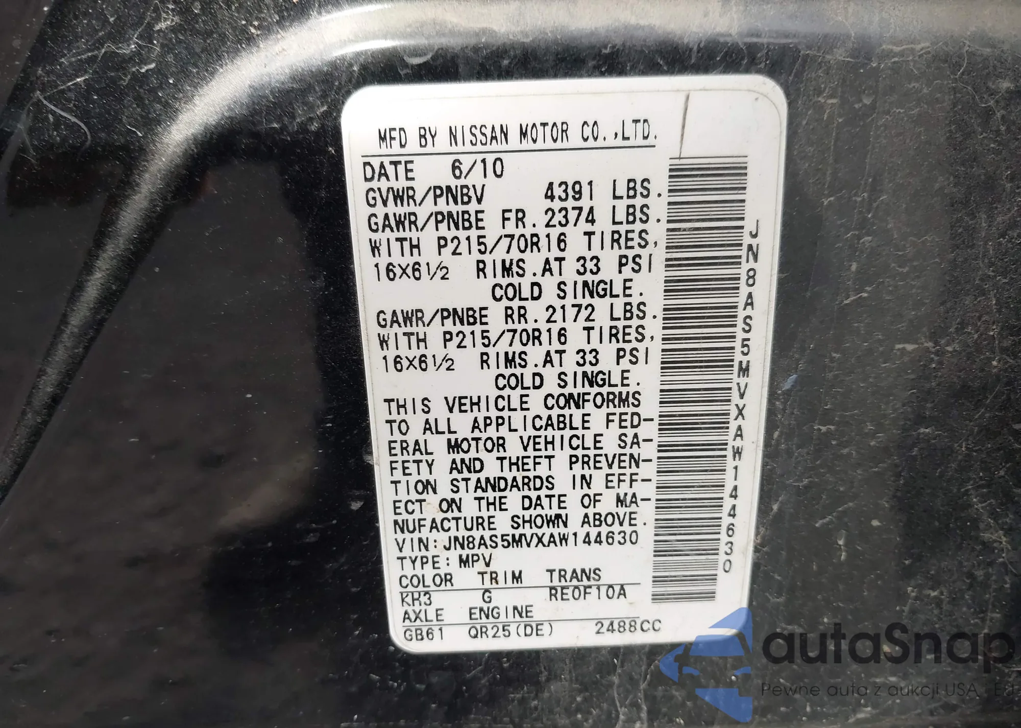 • VIN 1N4AL2AP3CN430010