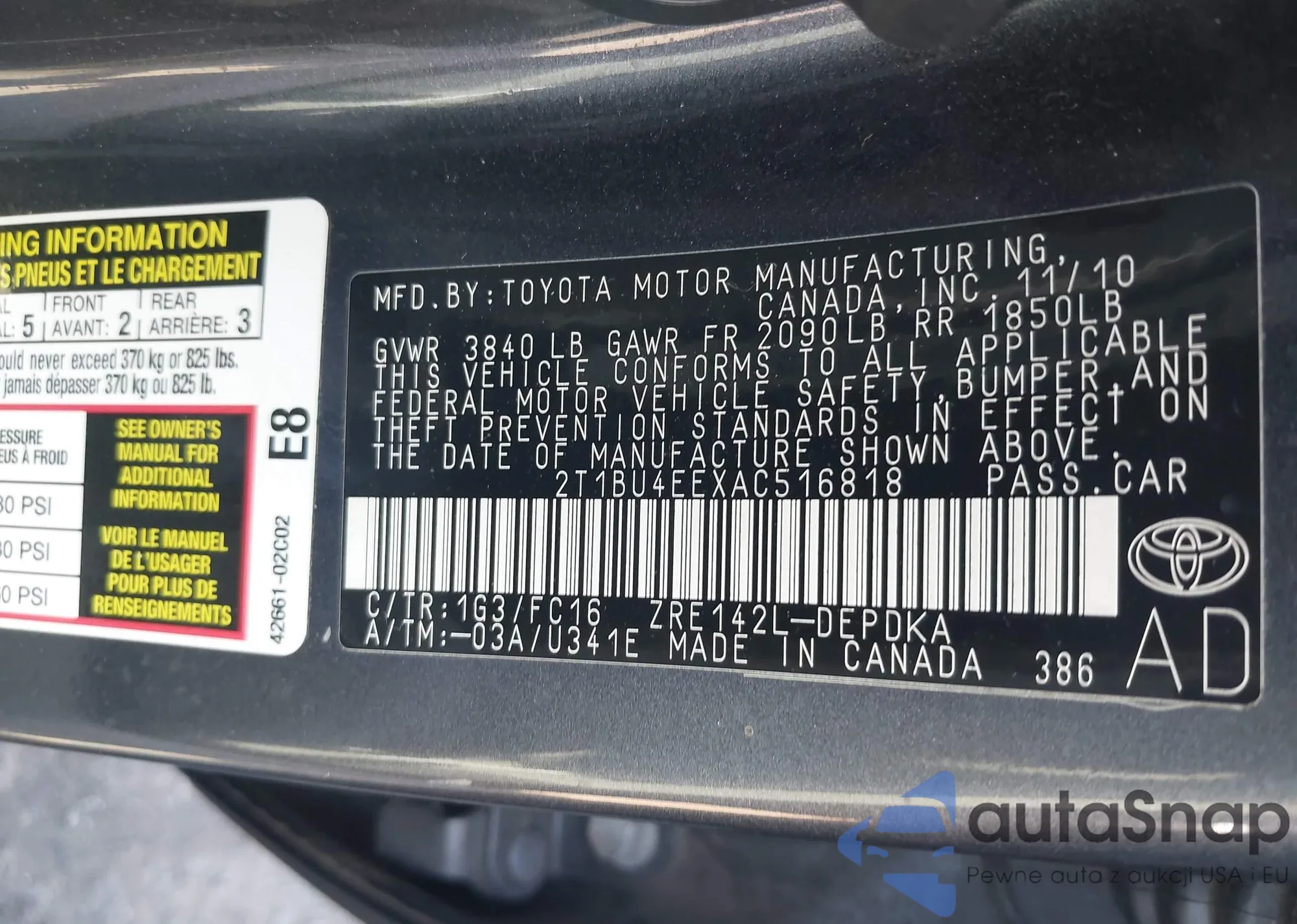 • VIN 2T1BU4EEXAC516818