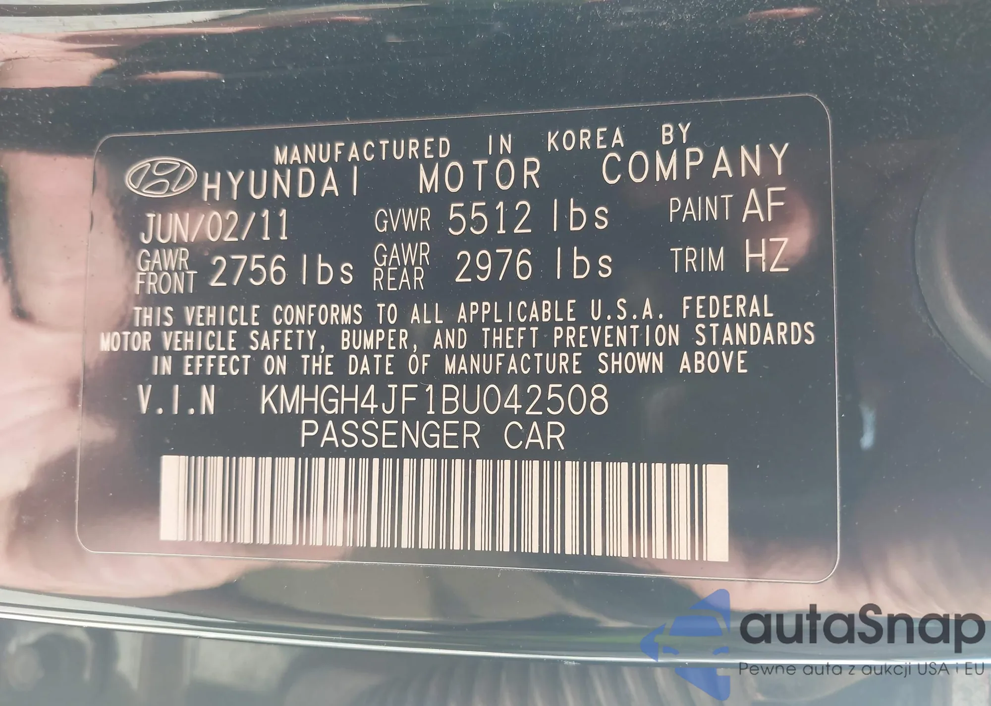 LOT: 43268360 VIN: KMHDH4AH5EU129210