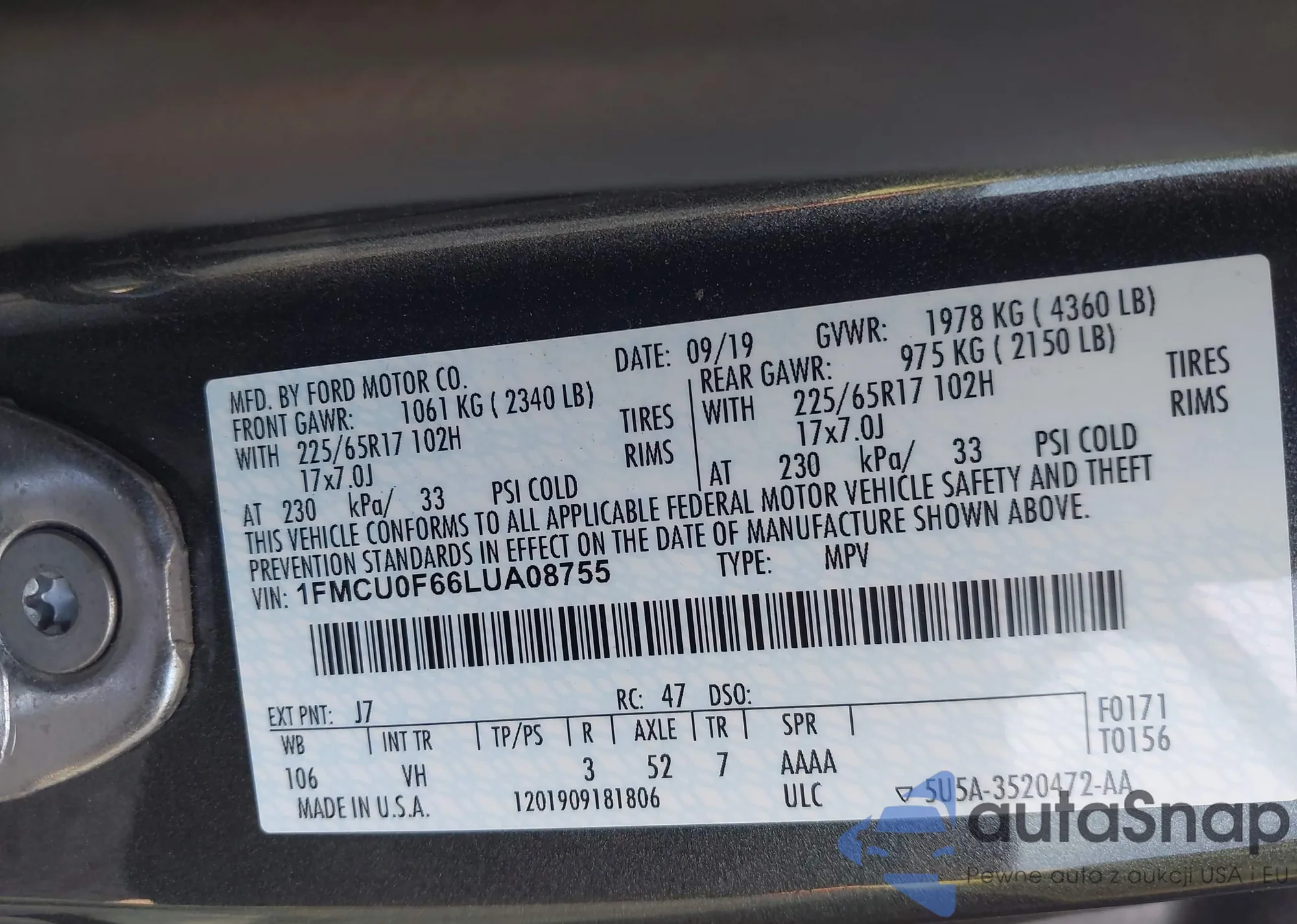 • VIN 1FMCU0F66LUA08755
