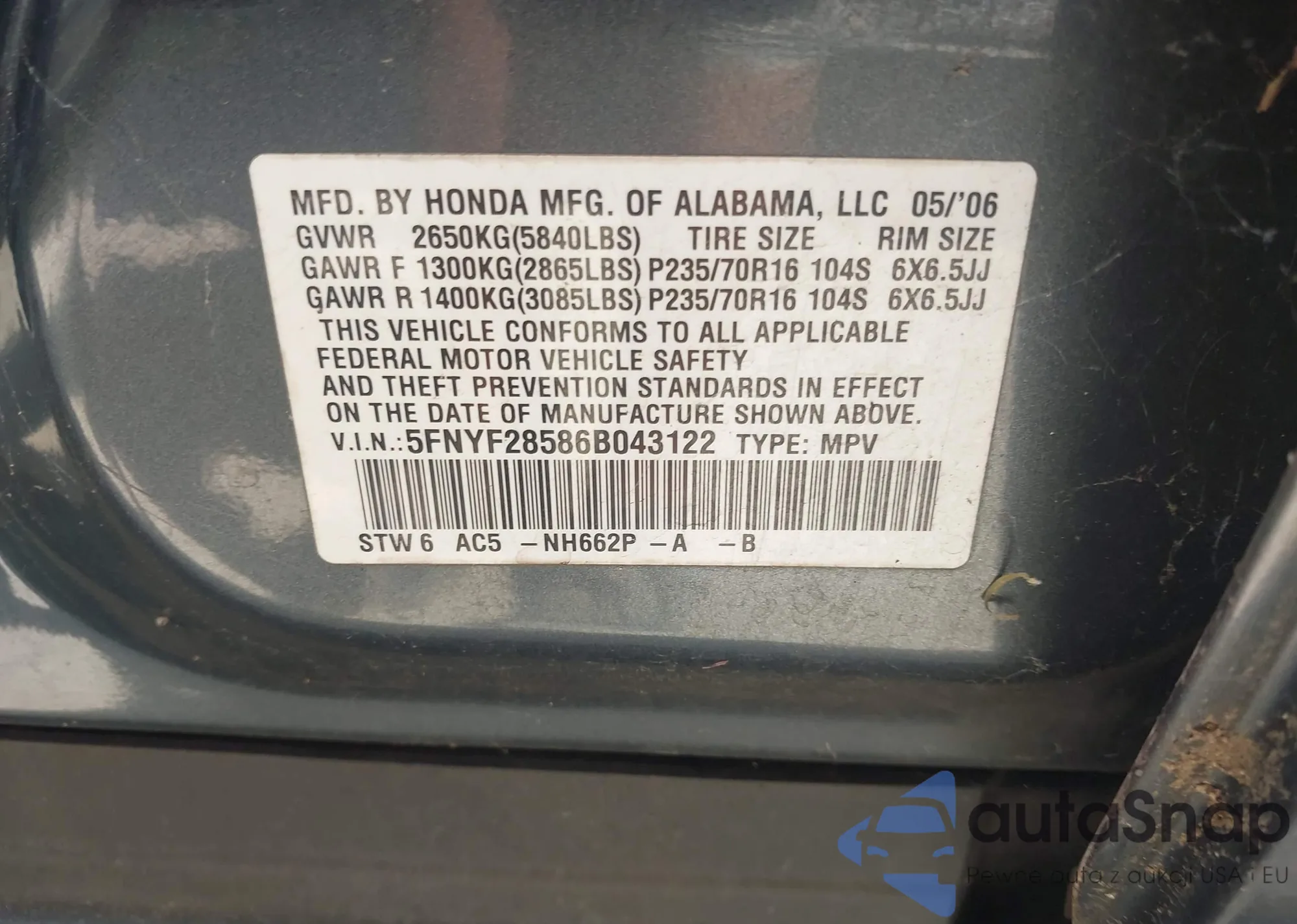 LOT: 43178083 VIN: JHMCP26418C011645
