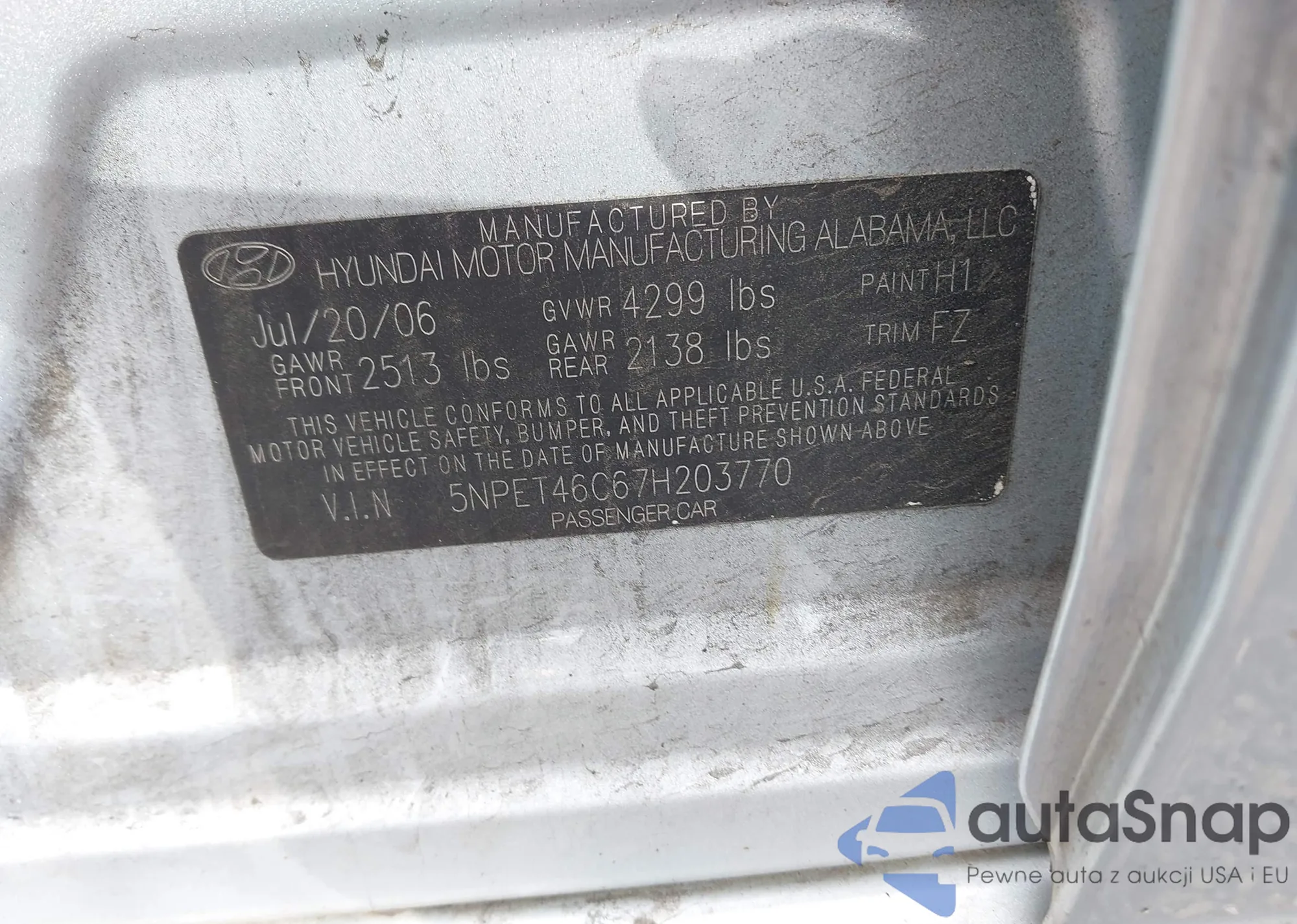 • VIN 5NPET46C67H203770