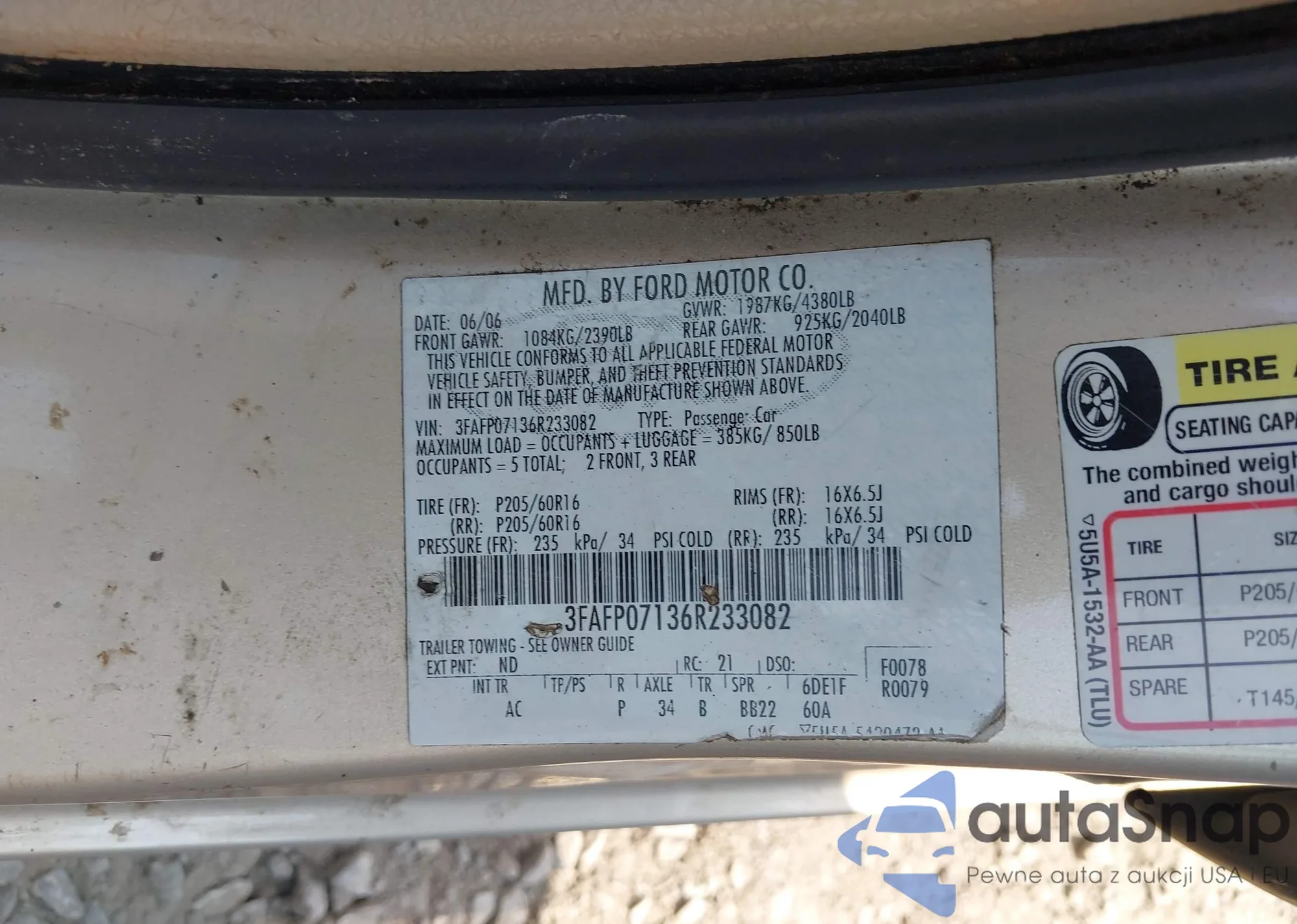 LOT: 43153444 VIN: 3FAFP07136R233082